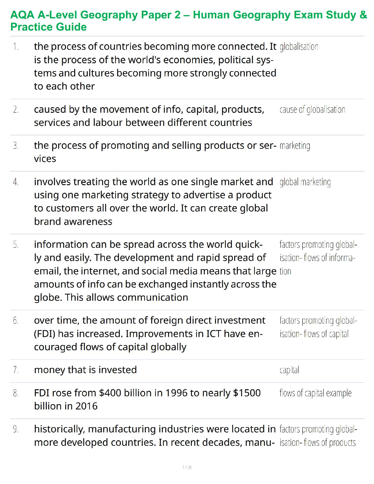 Education > STUDY GUIDE > AQA A-Level Geography Paper 2 – Human Geography Exam Study & Practice Guide (All)