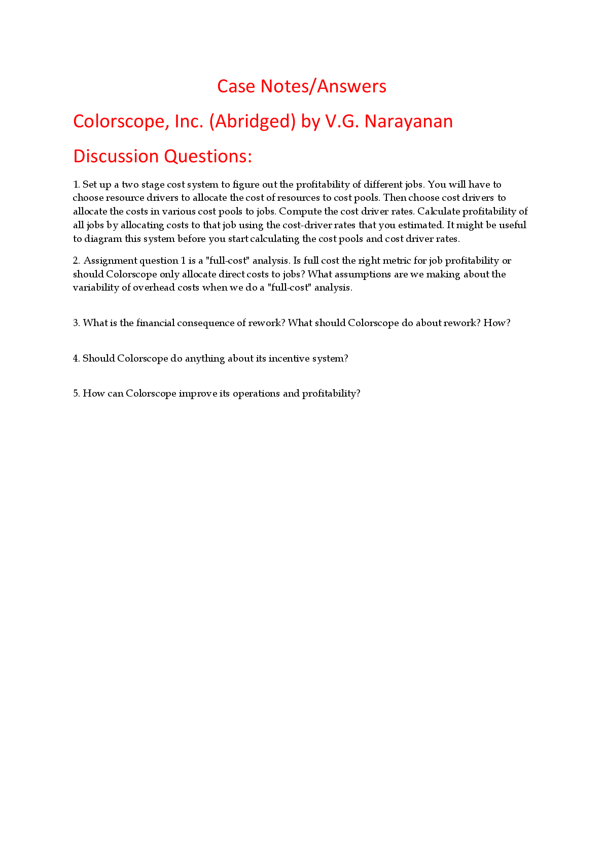 Education > eBook-PDF > Case Notes/Answers Colorscope, Inc. (Abridged) by V.G. Narayanan (All)