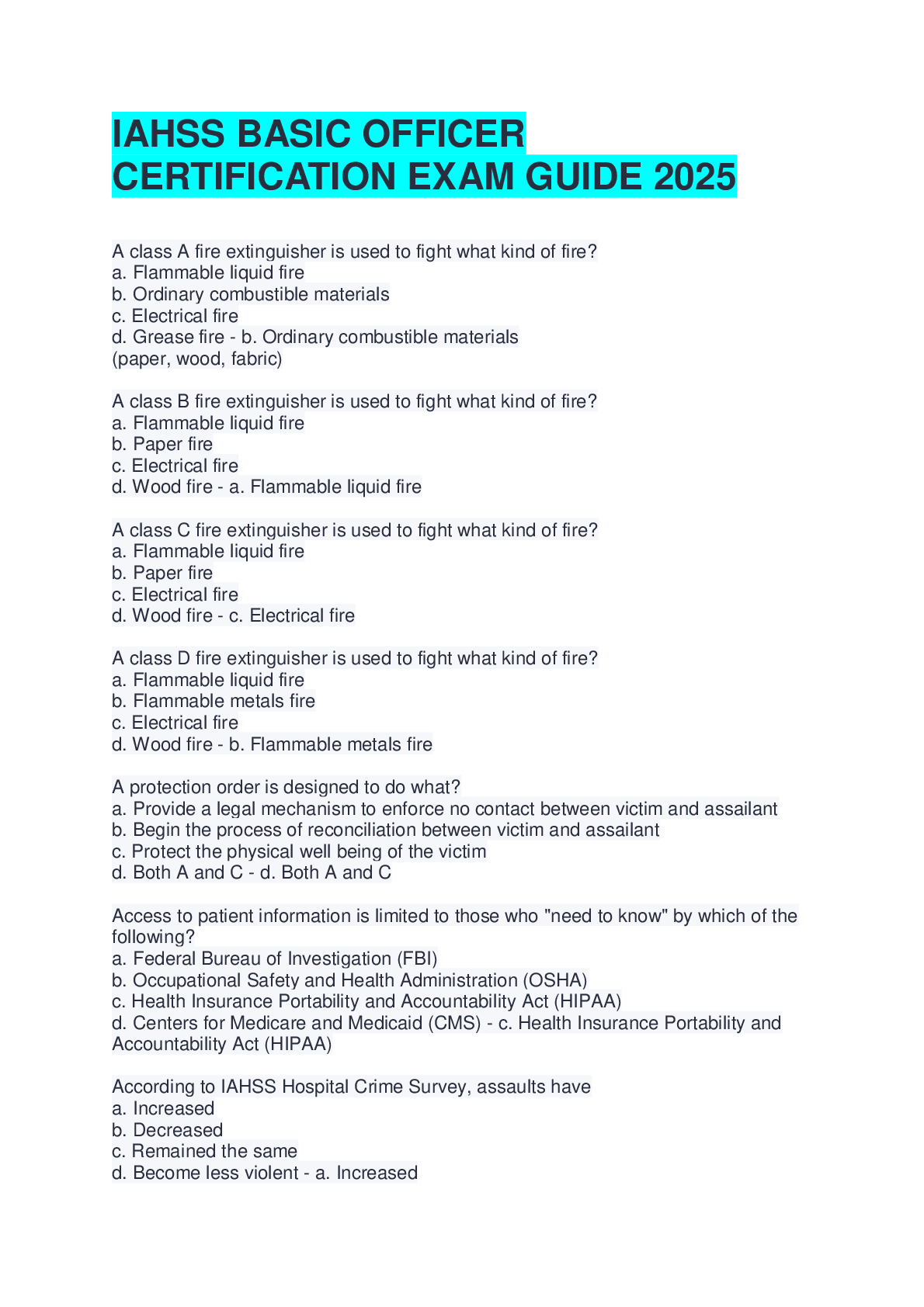 Education > EXAM REVIEW > IAHSS BASIC OFFICER CERTIFICATION EXAM GUIDE 2025 (All)