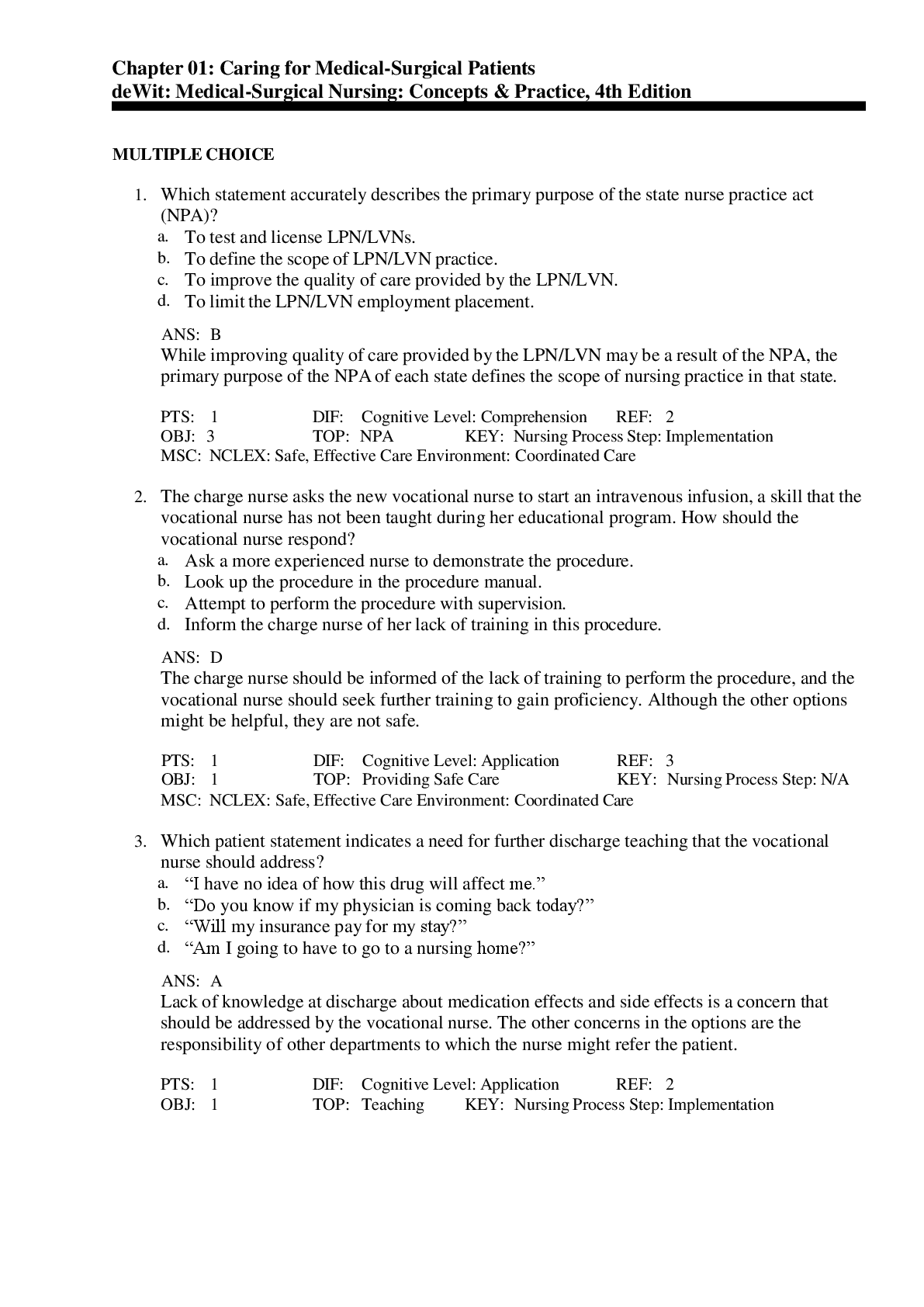 Education > TEST BANKS > Test Bank Dewits Medical Surgical Nursing 4th Edition by Holly K. Stromberg (All)