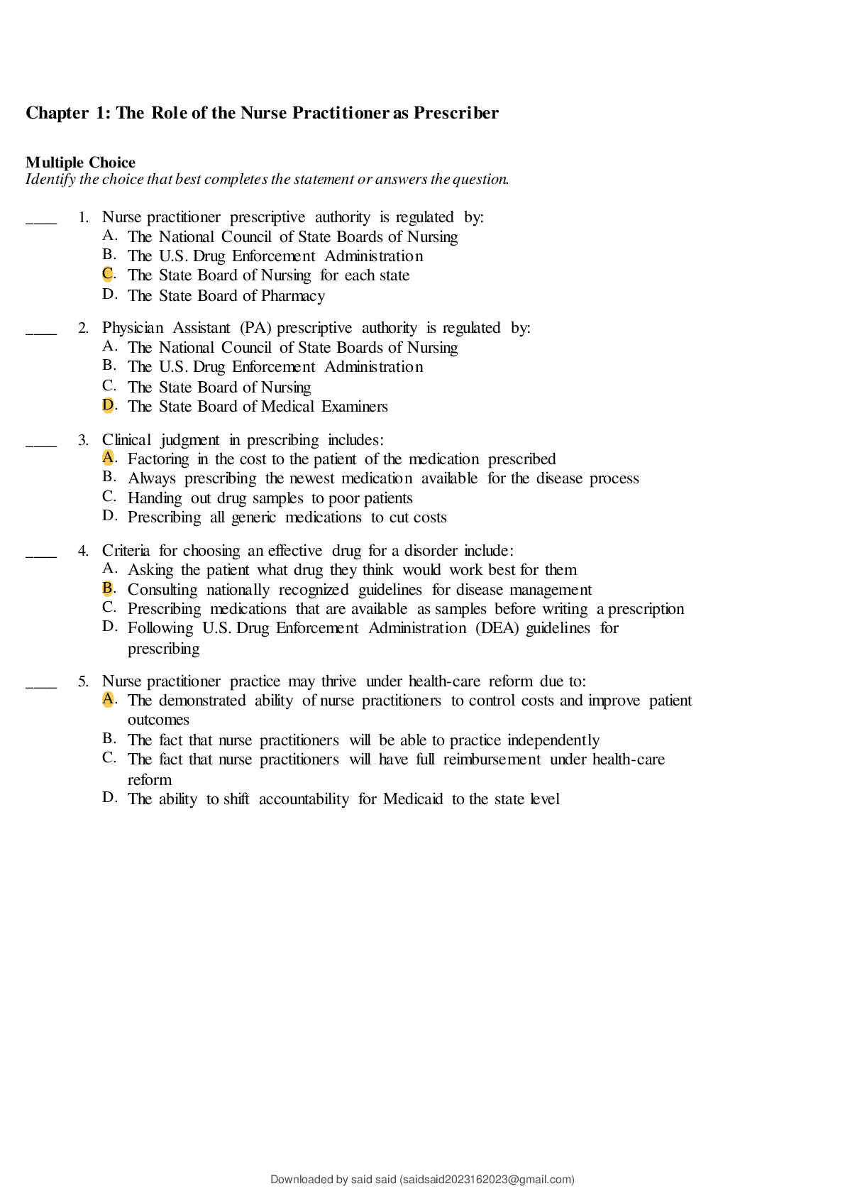 Education > TEST BANKS > TEST BANK Advanced Practice Nursing Essentials for Role Development 4th Edition (All)