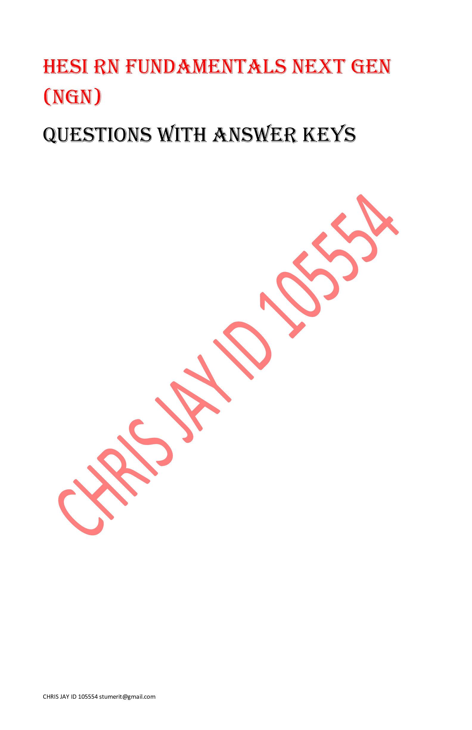 Education > HESI > HESI RN FUNDAMENTALS NEXT GEN (NGN) QUESTIONS AND ANSWERS GRADED A (All)