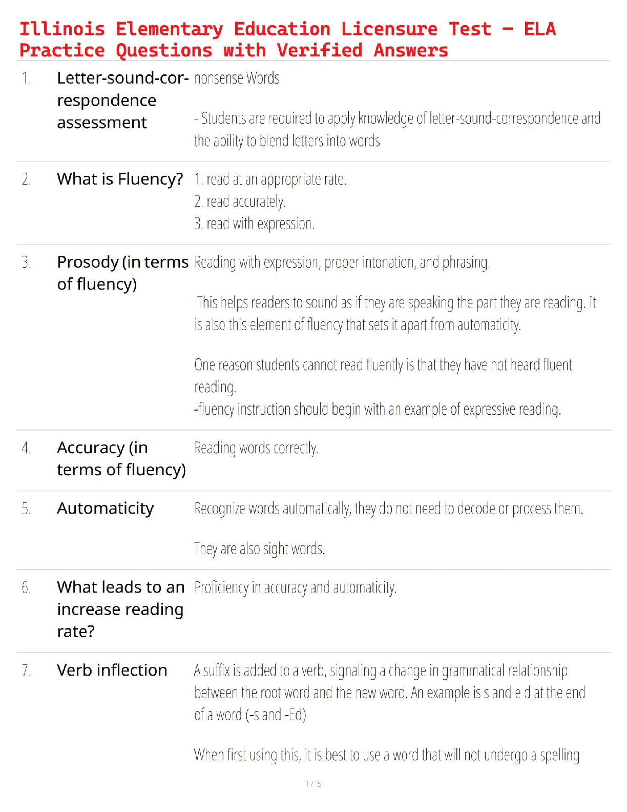 Education > QUESTIONS and ANSWERS > Illinois Elementary Education Licensure Test – ELA Practice Questions with Verified Answers (All)