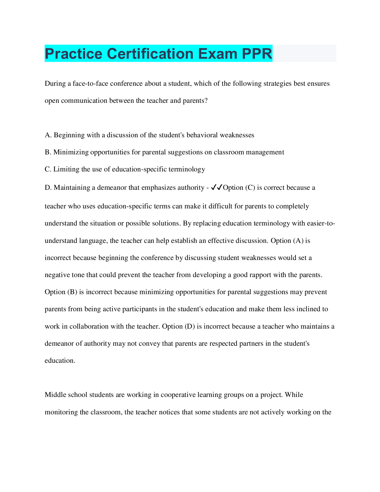 Education > QUESTIONS & ANSWERS > Practice Certification Exam PPR (All)