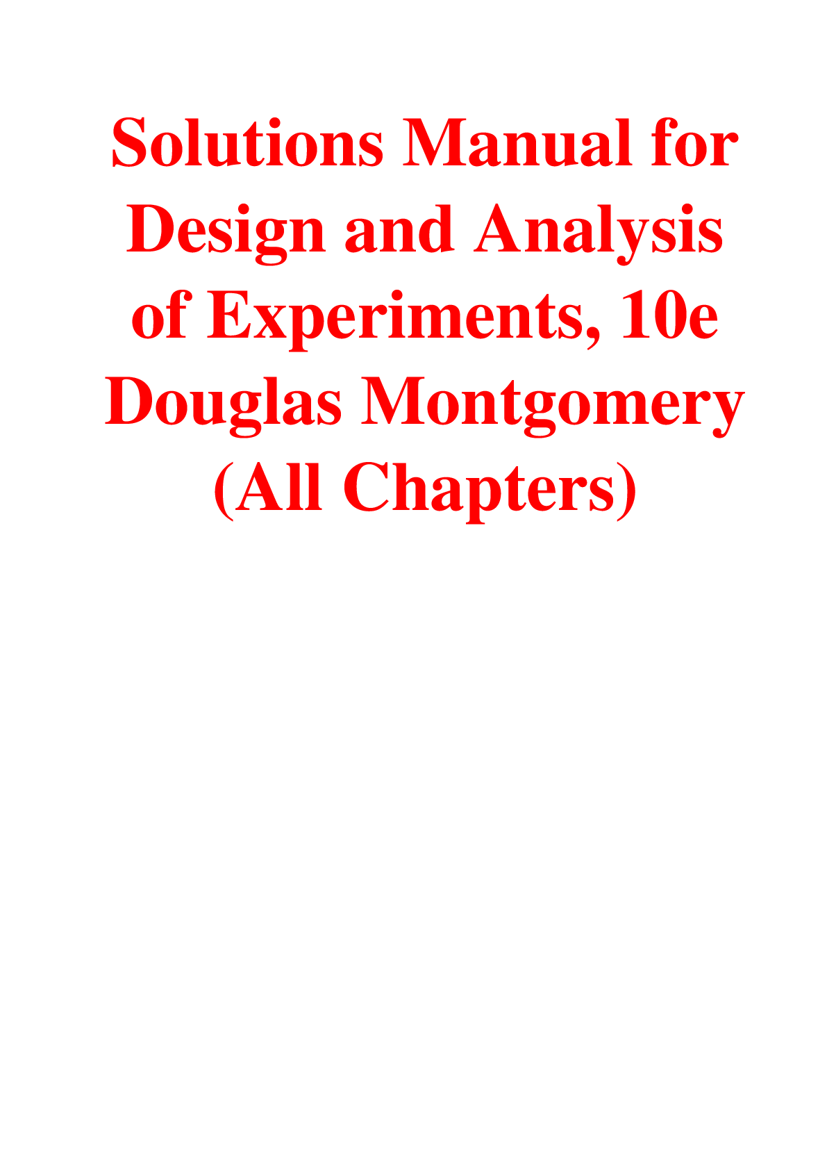 Education > SOLUTIONS MANUAL > Solutions Manual For Design and Analysis of Experiments, 10th Edition By Douglas Montgomery (All)