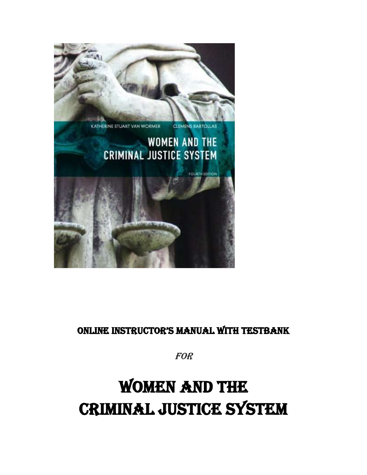 Education > INSTRUCTOR MANUALS > Instructor’s Manual with Test Bank For Women and the Criminal Justice System, 4E Katherine van Wormer (All)