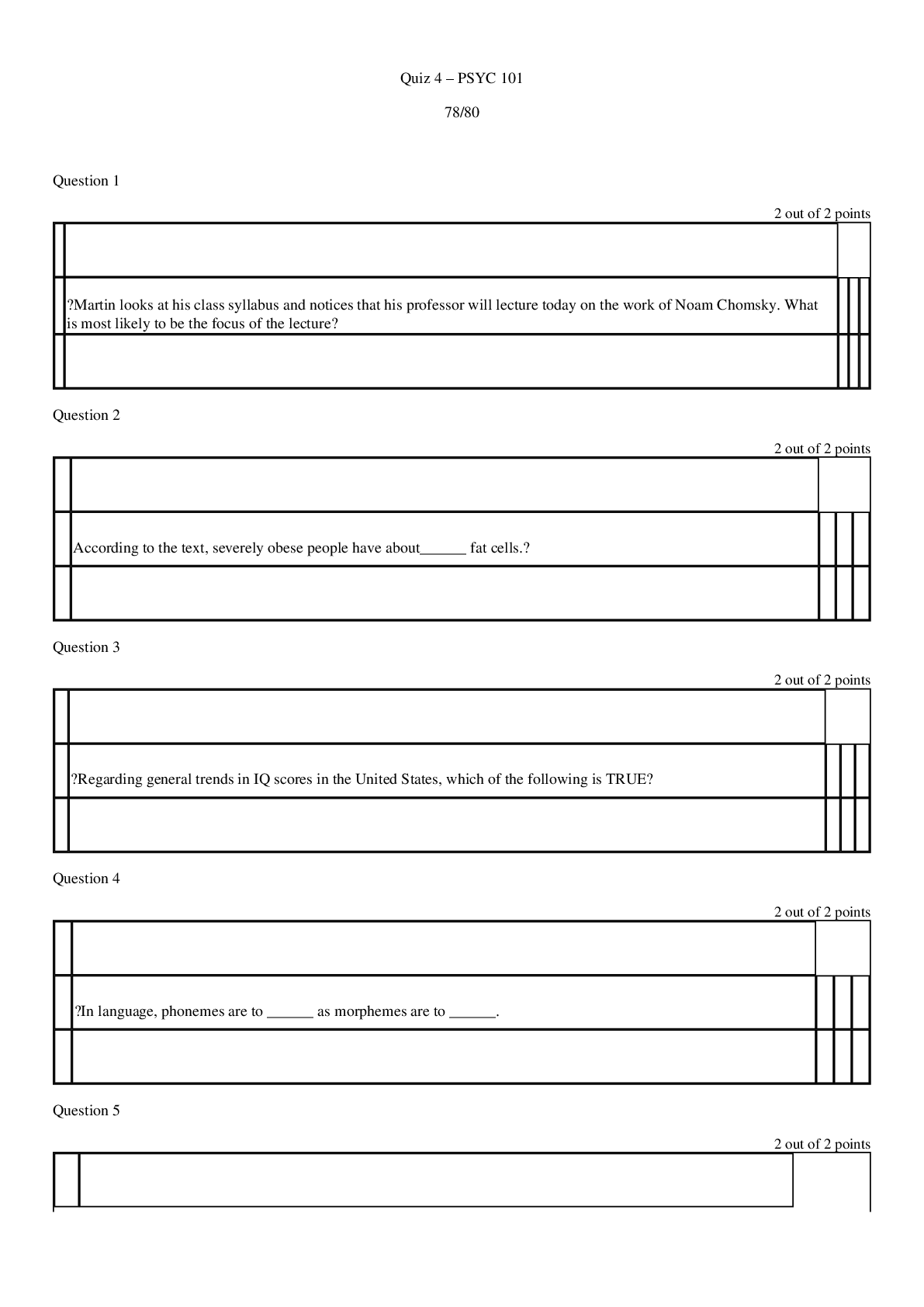 Education > QUESTIONS & ANSWERS > Liberty University PSYC 101 Quiz 4 (All)