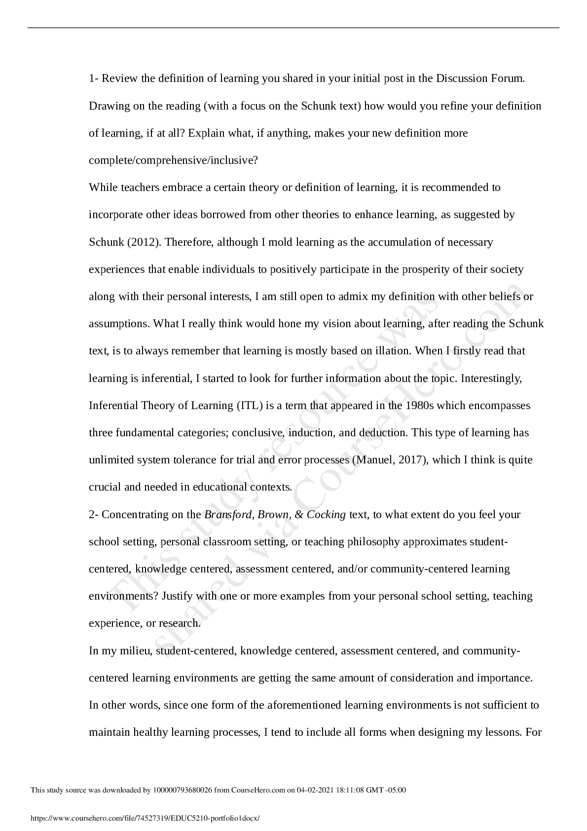 Education > DISCUSSION POST > University of the People - EDUC 5210EDUC 5210 portfolio 5. (All)