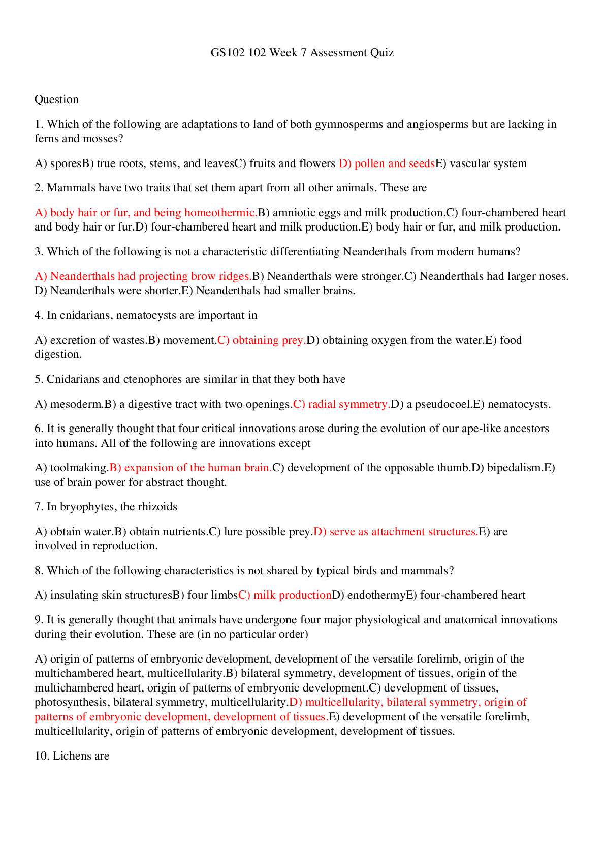 Education > EXAM > GS102 102 Week 7 Assessment Quiz/GS102 102 Week 7 Assessment Quiz (All)