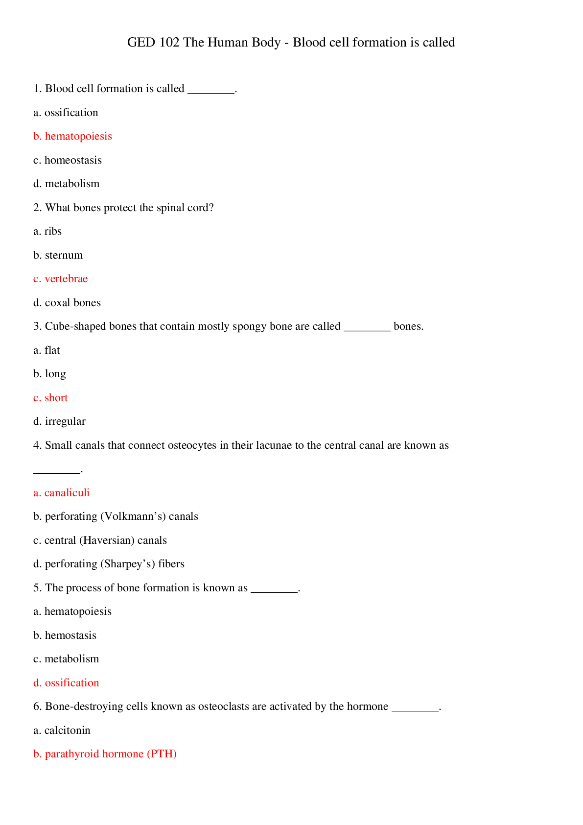 Education > EXAM > GED 102 The Human Body - Blood cell formation is called/GED 102 The Human Body - Blood cell formation is called (All)