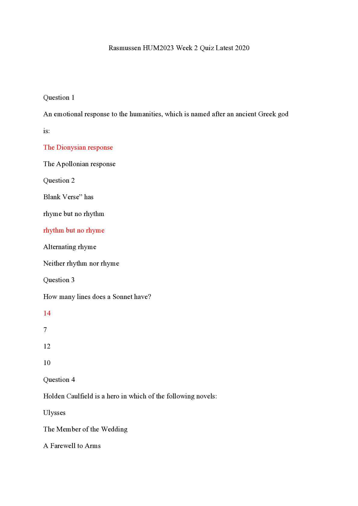 Education > EXAM > Rasmussen HUM2023 Week 2 Quiz (New) 2020 (All)