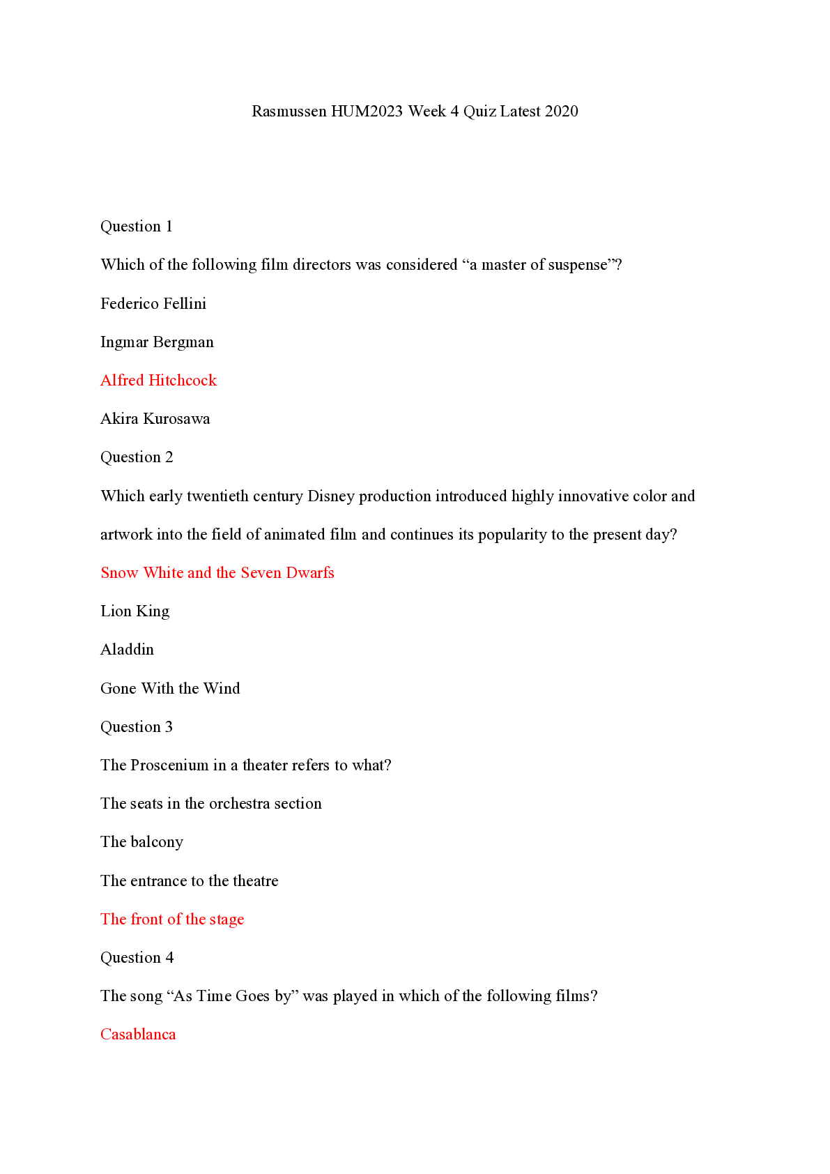 Education > EXAM > Rasmussen HUM2023 Week 4 Quiz (New) 2020 (All)
