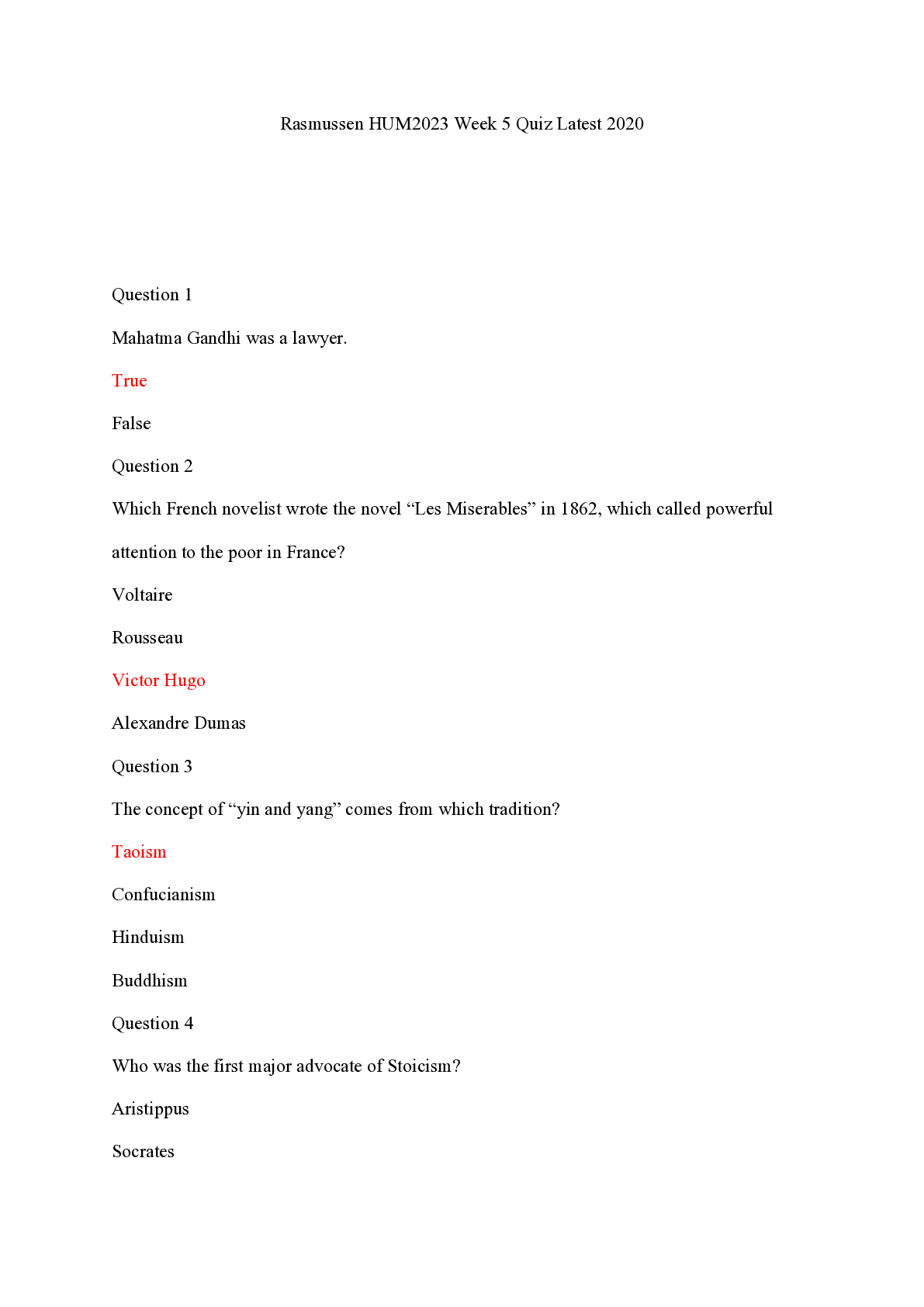 Education > EXAM > Rasmussen HUM2023 Week 5 Quiz (New) 2020 (All)