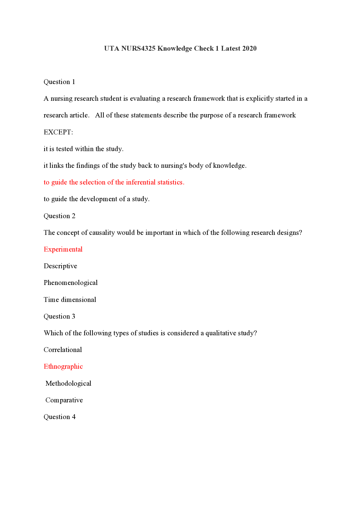 Education > EXAM > UTA NURS4325 Knowledge Check 1 (New) 2020 (All)