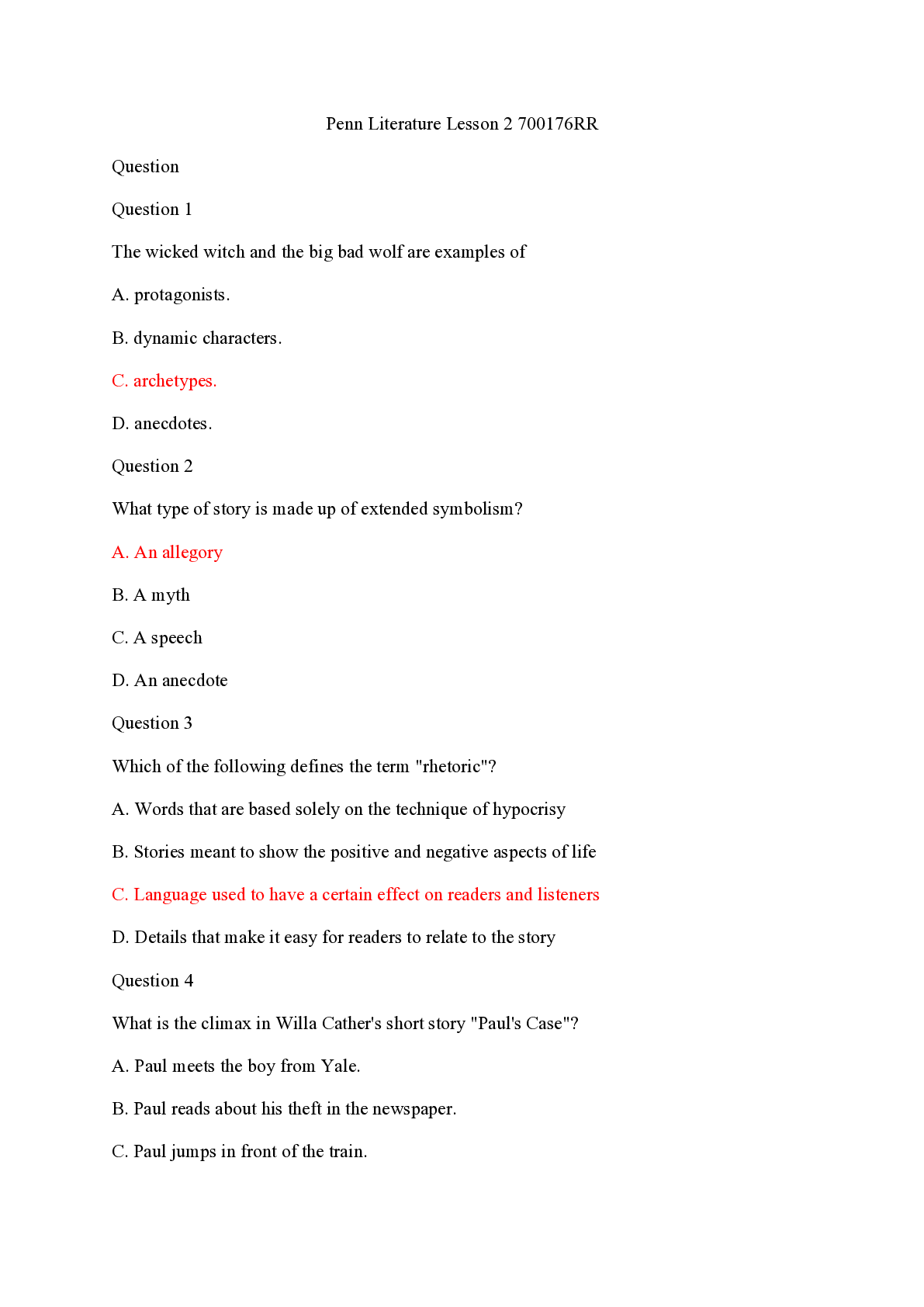 Education > EXAM > Penn Literature Lesson 2 700176RR/Penn Literature Lesson 2 700176RR (All)