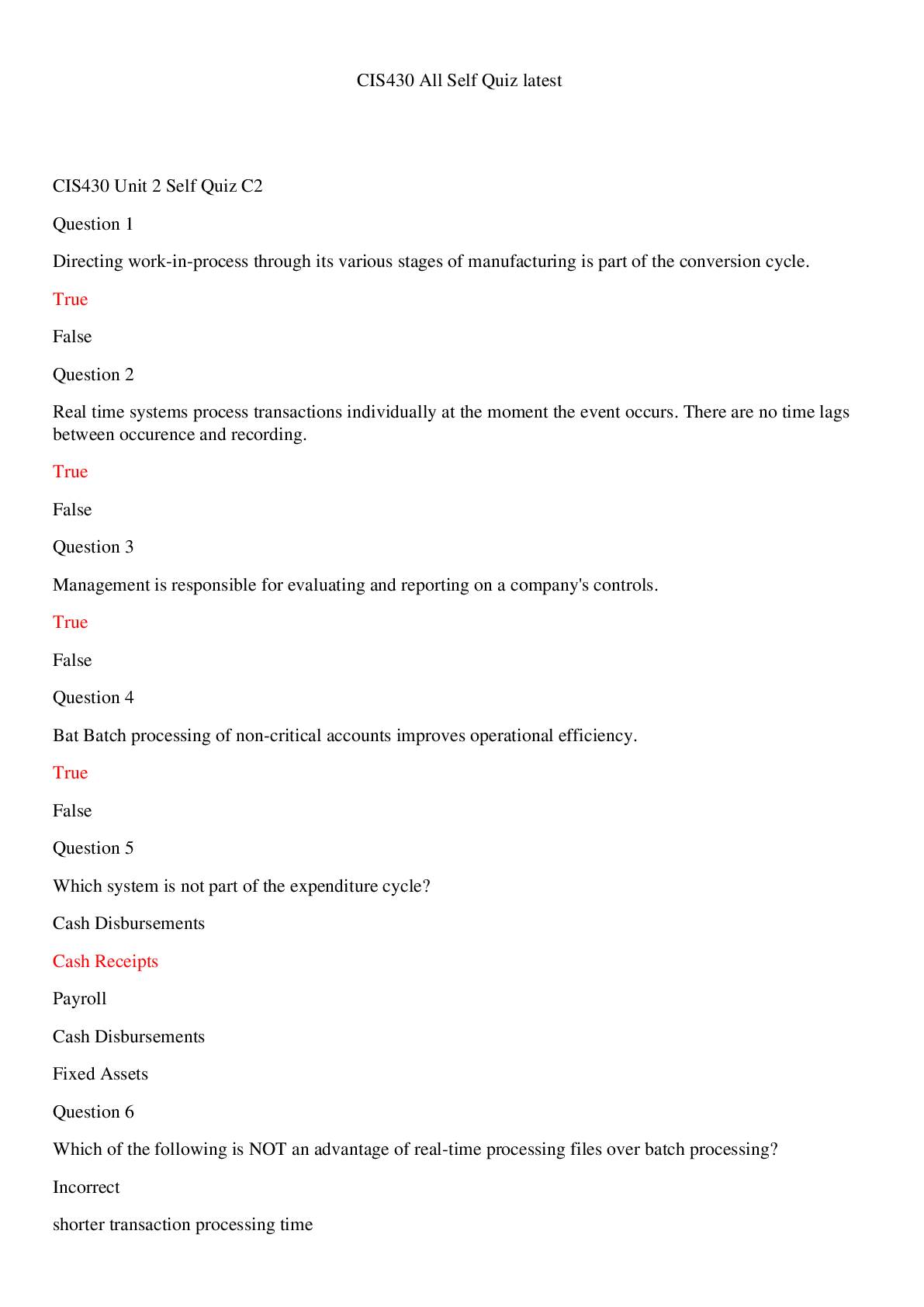 Education > EXAM > CIS430 All Self Quiz latest /CIS430 All Self Quiz latest (All)