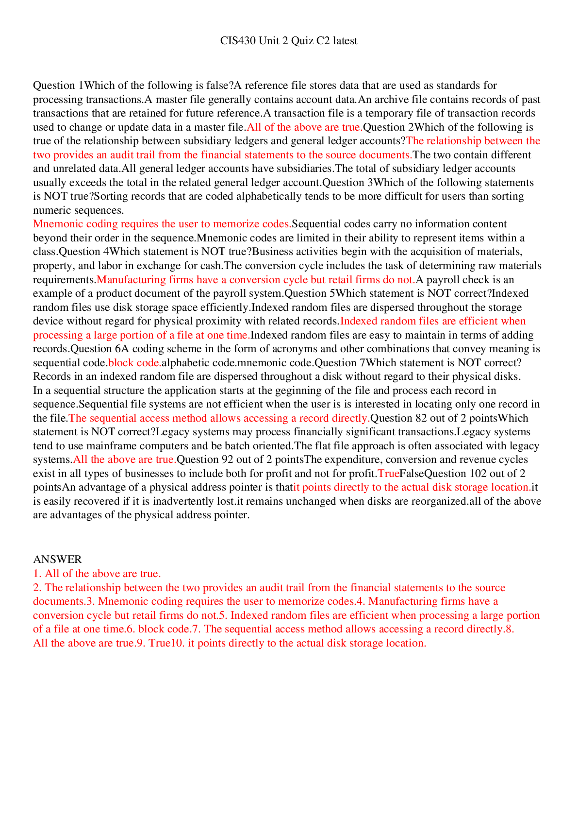 Education > EXAM > CIS430 Unit 2 Quiz C2 latest/CIS430 Unit 2 Quiz C2 latest (All)