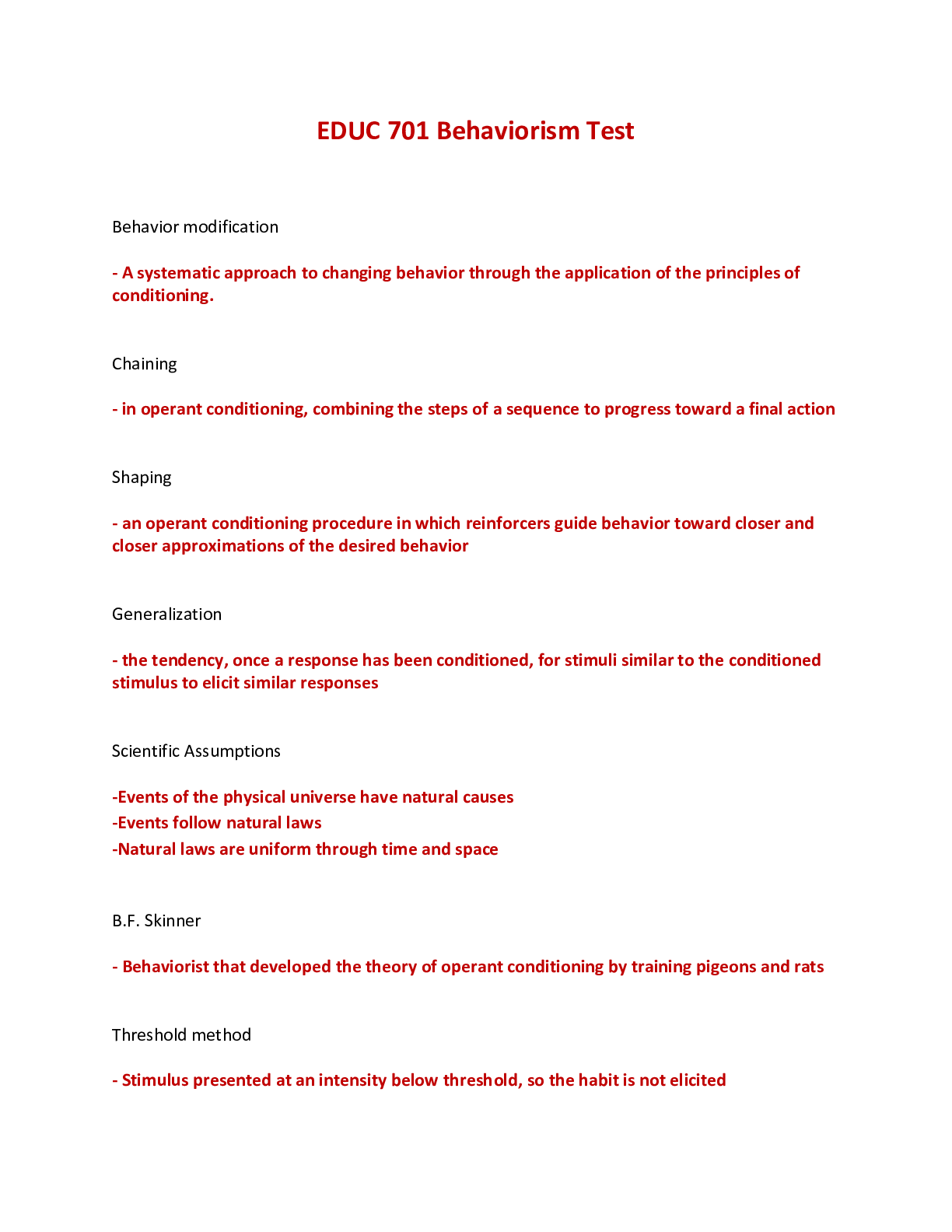 Education > EXAM > EDUC 701 Behaviorism Test - Liberty University (All)
