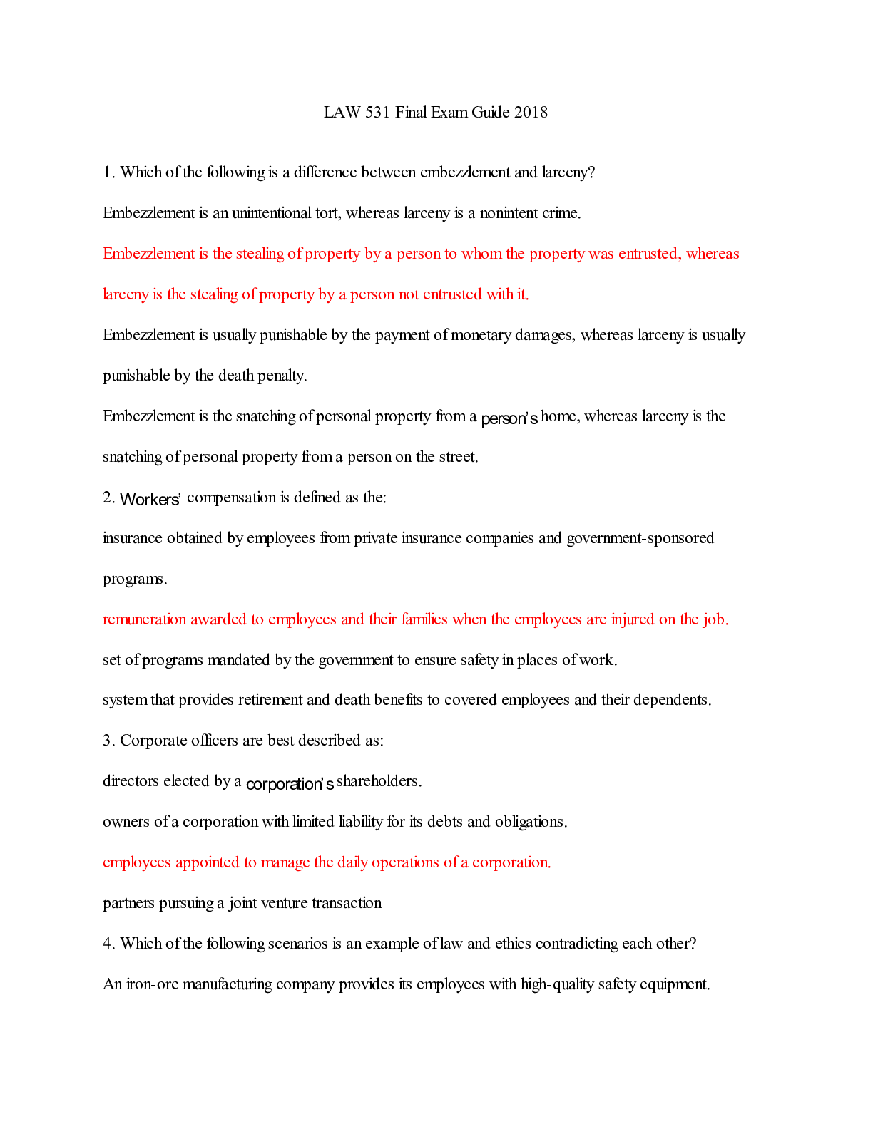 Education > EXAM > LAW 531 Final Exam Guide 2018/LAW 531 Final Exam Guide 2018 (All)