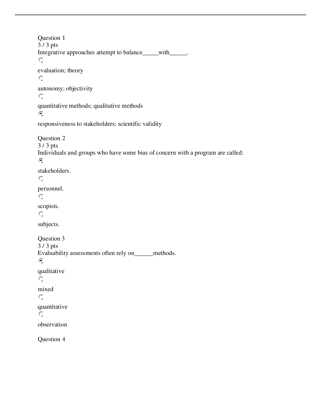 Education > QUESTIONS & ANSWERS > Liberty University - EDUC 750 EDUC750 Quiz- Mixed Methods and Evaluation Research (All)