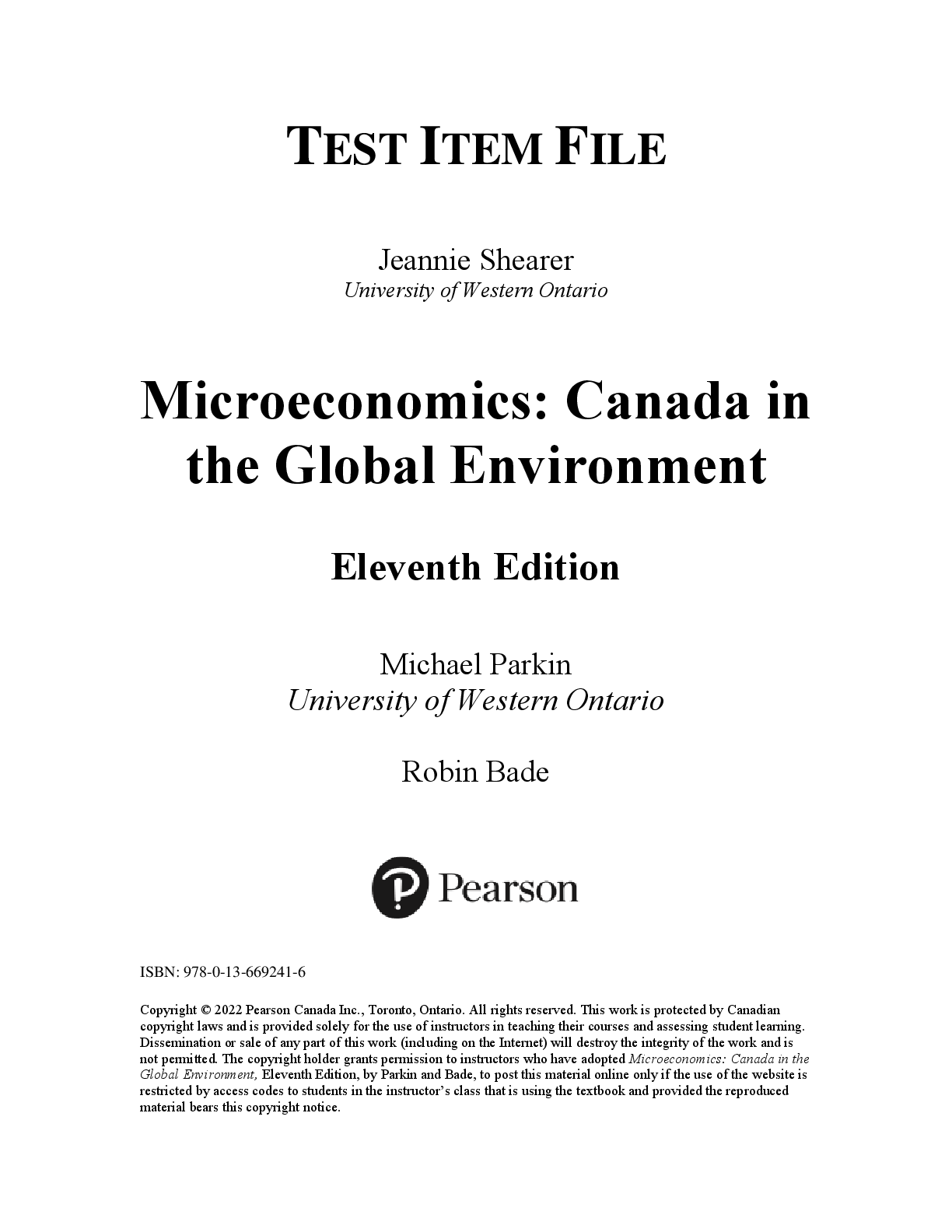 Education > TEST BANKS > Test Bank for Microeconomics, Canada in the Global Environment 11th Edition By Michael Parkin, Robin Bade (All)