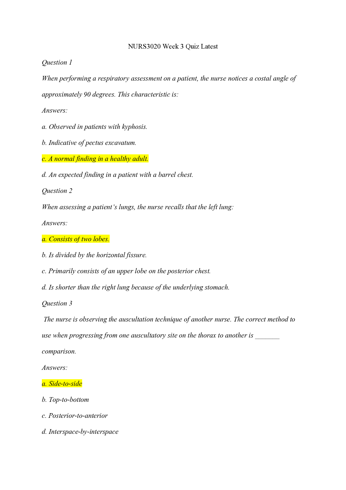 Education > EXAM > NURS3020 Week 3 Quiz Latest/NURS3020 Week 3 Quiz Latest (All)