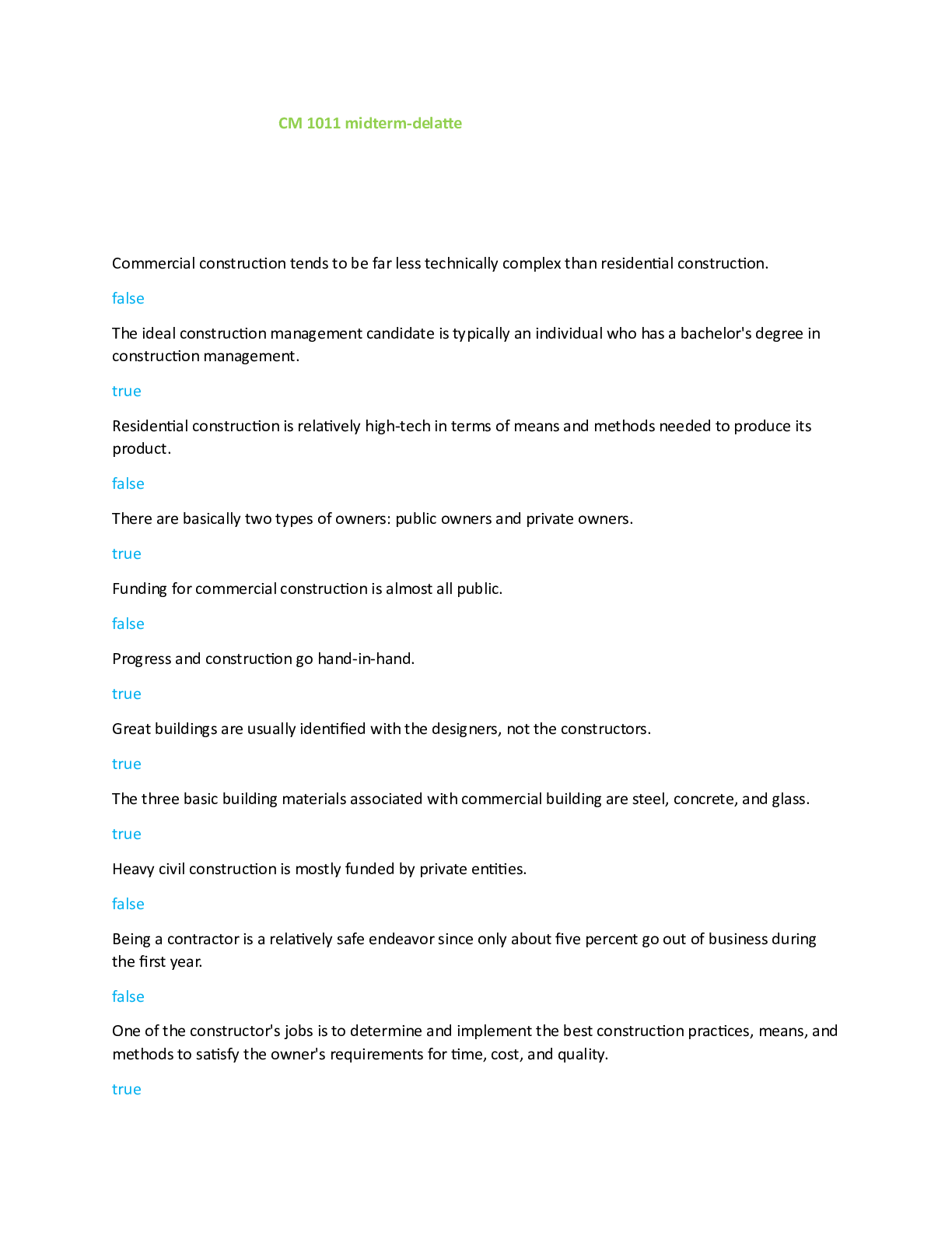 Education > EXAM > CM 1011 midterm-delatte questions and answers complete solution rated A+ 2024/2025 (All)