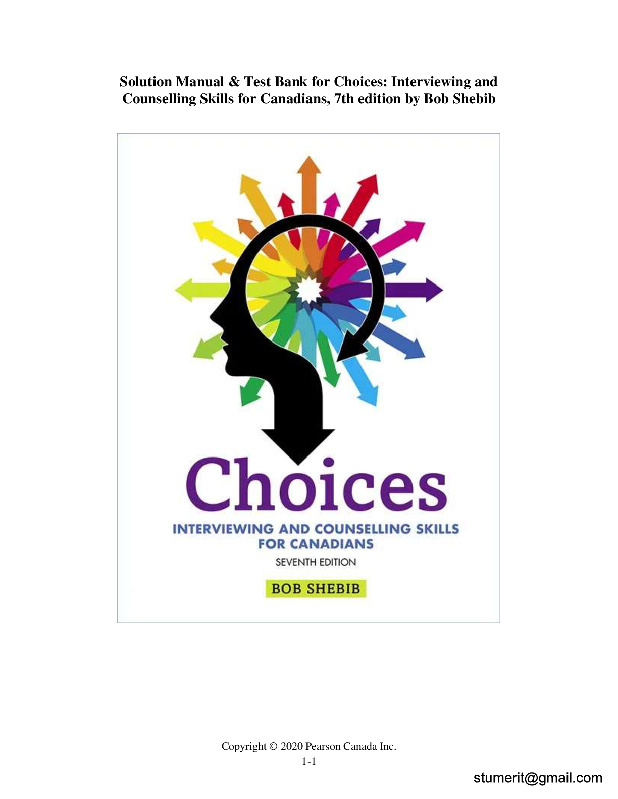 Education > SOLUTIONS MANUAL > Solution Manual for Choices: Interviewing and Counselling Skills for Canadians, 7th edition by Bob Shebib (All)