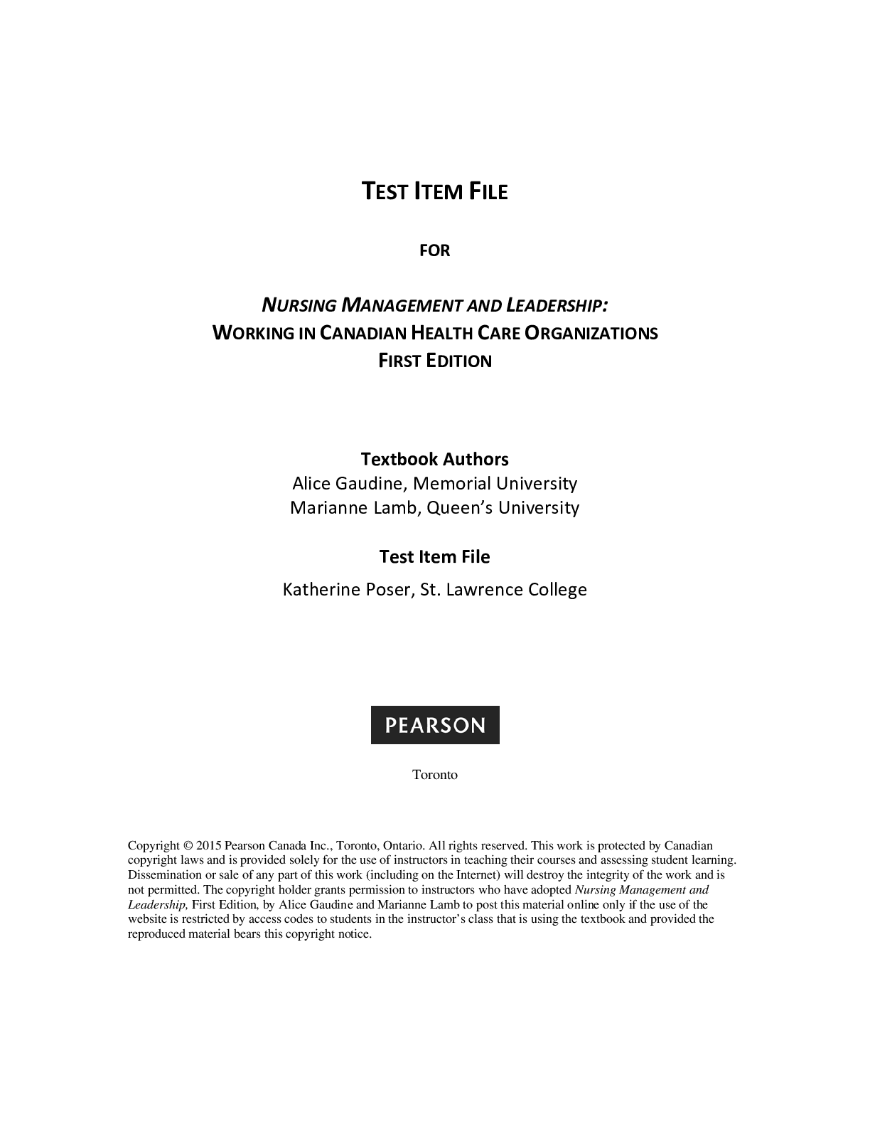 Education > TEST BANKS > Test Bank For Nursing Leadership and Management, 1st edition by Alice Gaudine (All)