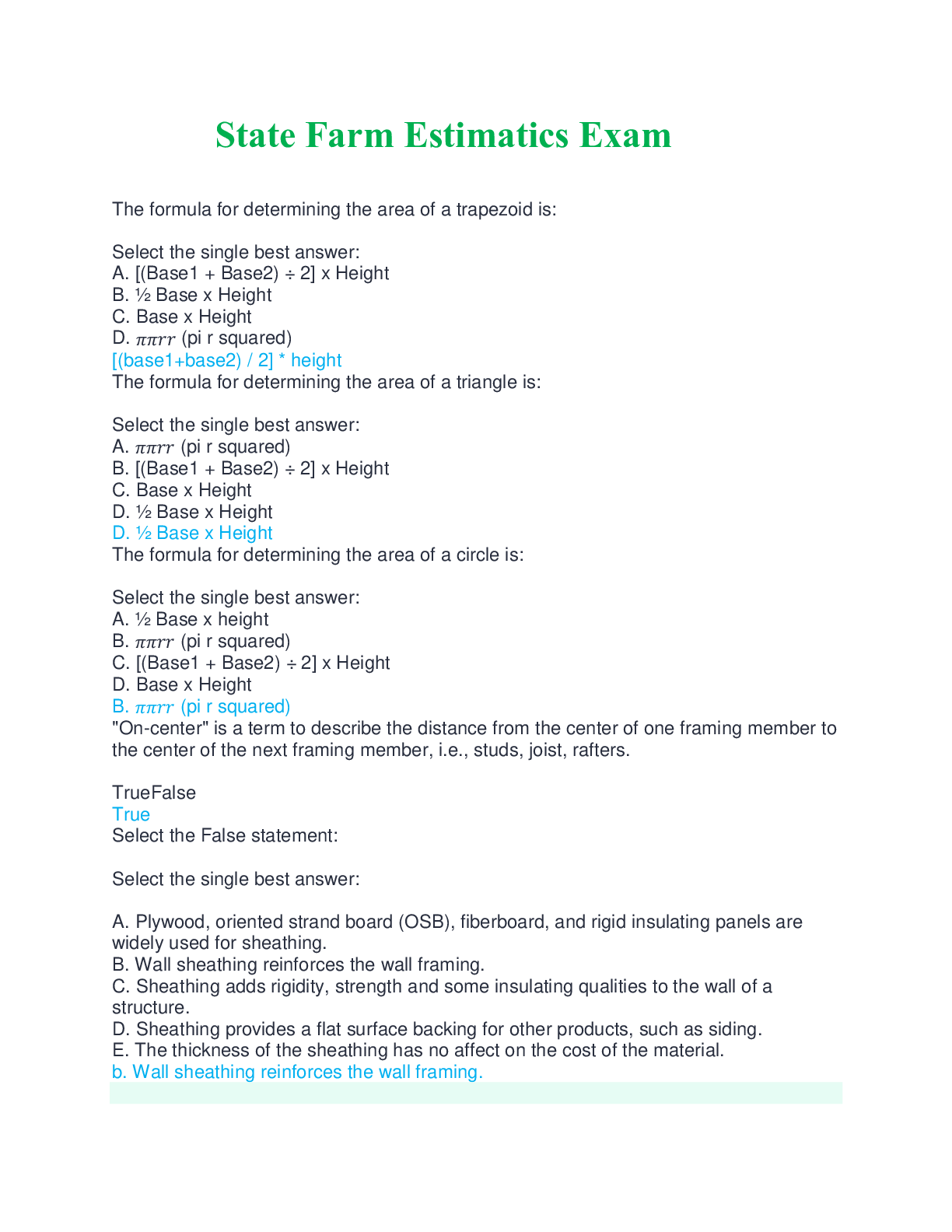 Education > EXAM > State Farm Estimatics Exam question and answers complete solution Graded A+ 2025 (All)