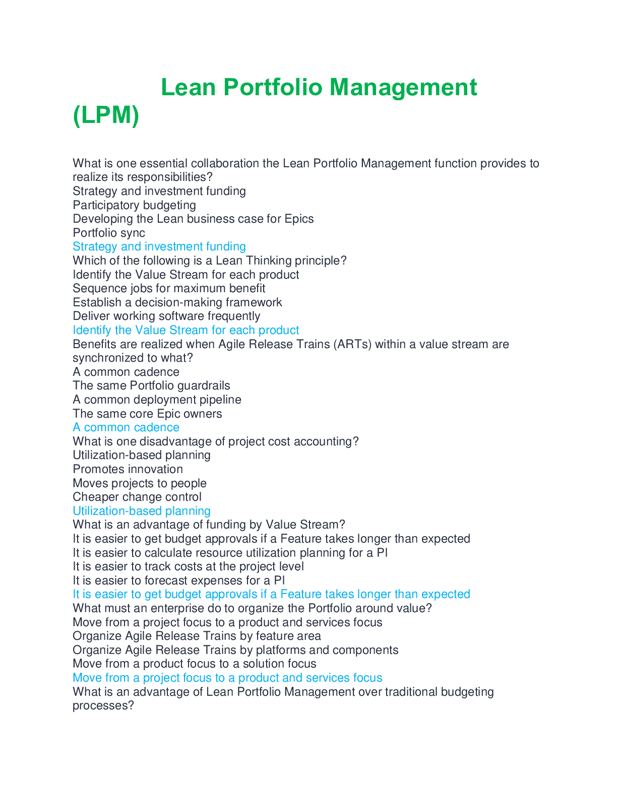 Education > EXAM > Lean Portfolio Management (LPM) questions and answers 100% complete solution 2025 (All)