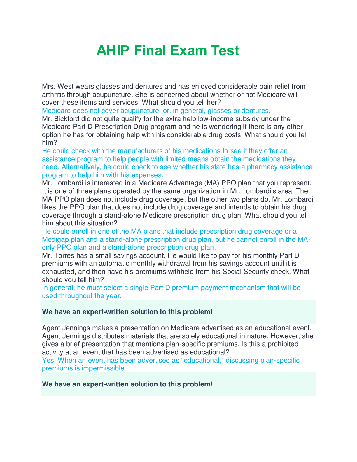 Education > EXAM > AHIP Final Exam Test questions and detailed correct answers 100% complete solution 2025 (All)