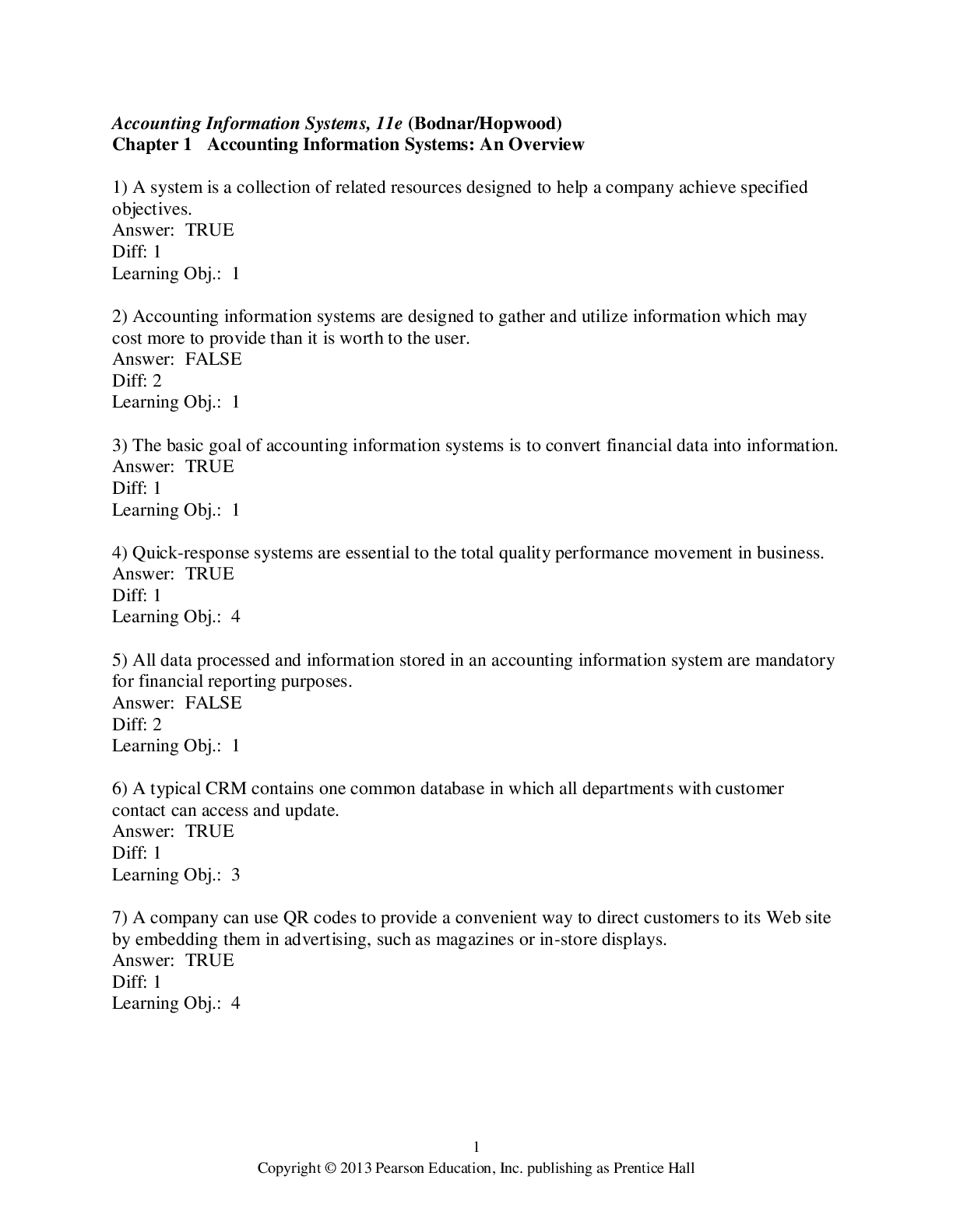 Education > TEST BANKS > Test Bank For Accounting Information Systems, 11E George H. Bodnar William S. Hopwood (All)