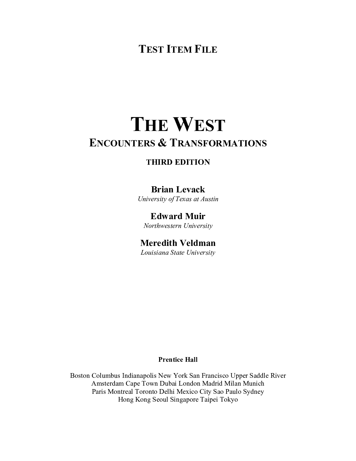 Education > TEST BANKS > TESTBANK AND INSTRUCTOR MANUAL FOR THE WEST ENCOUNTERS & TRANSFORMATIONS THIRD EDITION BY BRIAN EDWARD VELDMAN (2) (All)