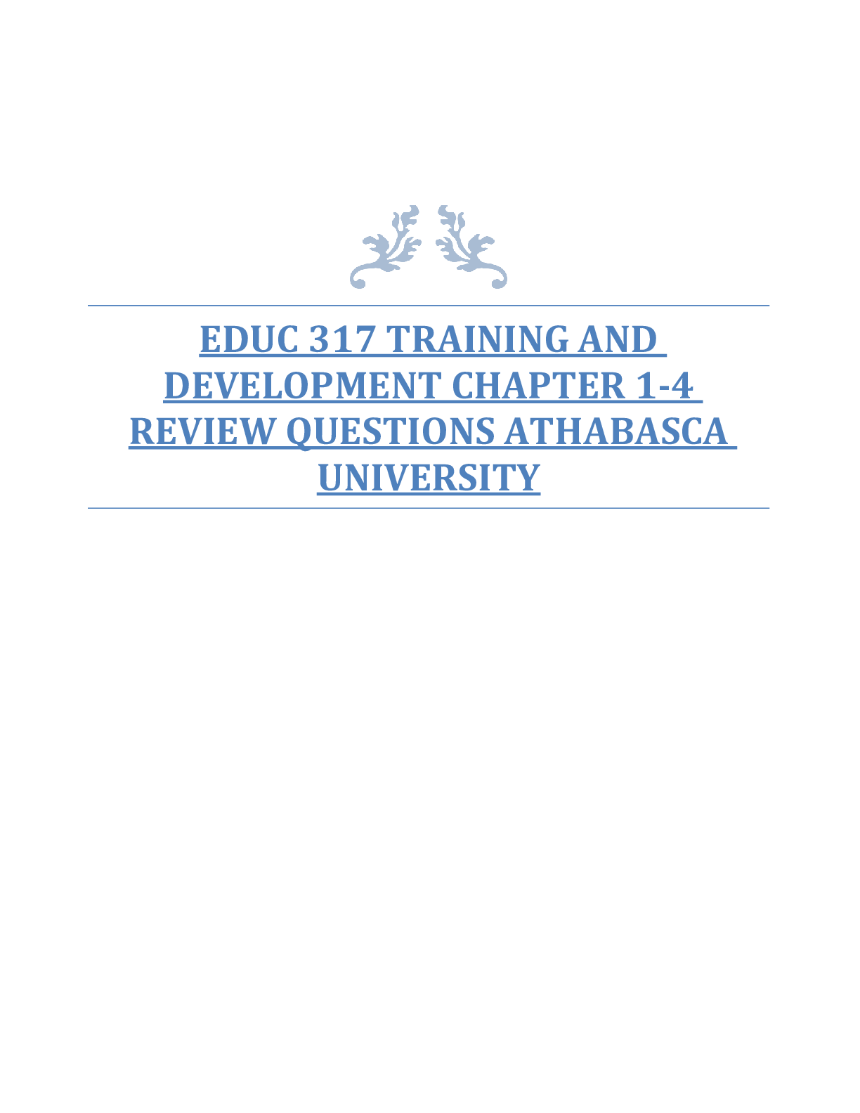 Education > EXAM > AU EDUC 317 TRAINING AND DEVELOPMENT CHAPTER 1-4 REVIEW QUESTIONS ATHABASCA UNIVERSITY (All)