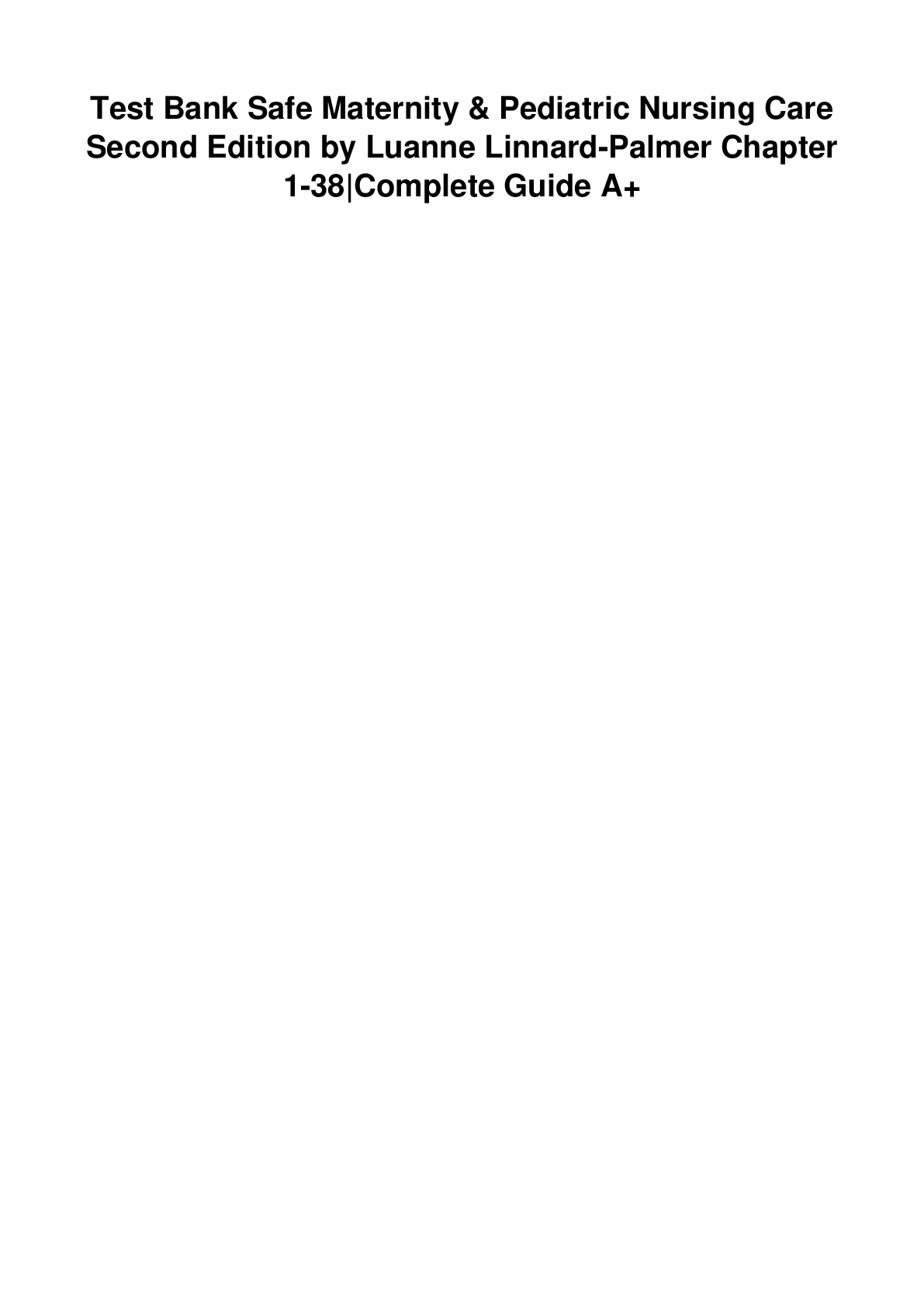 Education > TEST BANKS > TEST BANK Safe Maternity and Pediatric Nursing Care 2nd Edition Linnard Palmer (All)