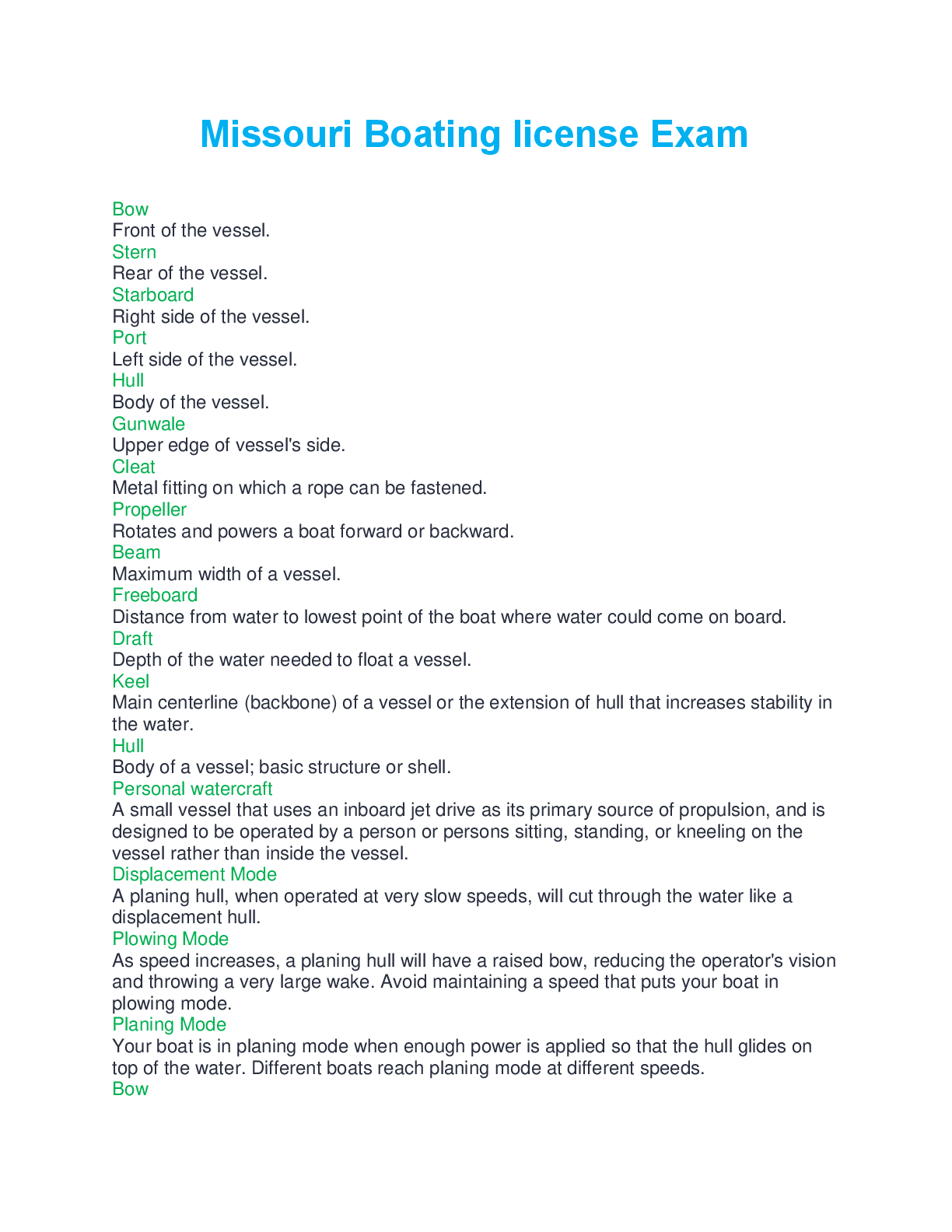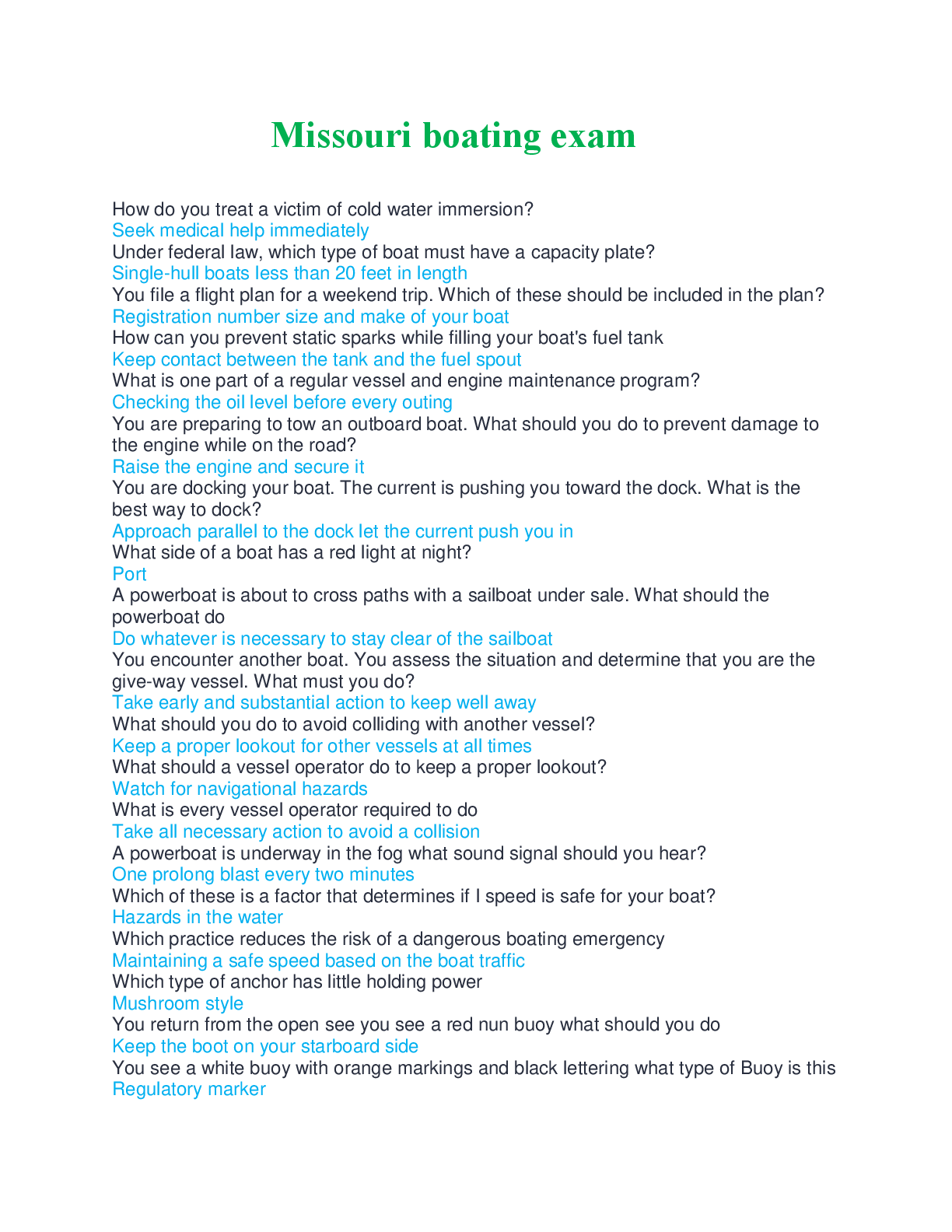 Education > EXAM > Missouri Boating license Exam questions and answers 100% complete solution 2025 (All)