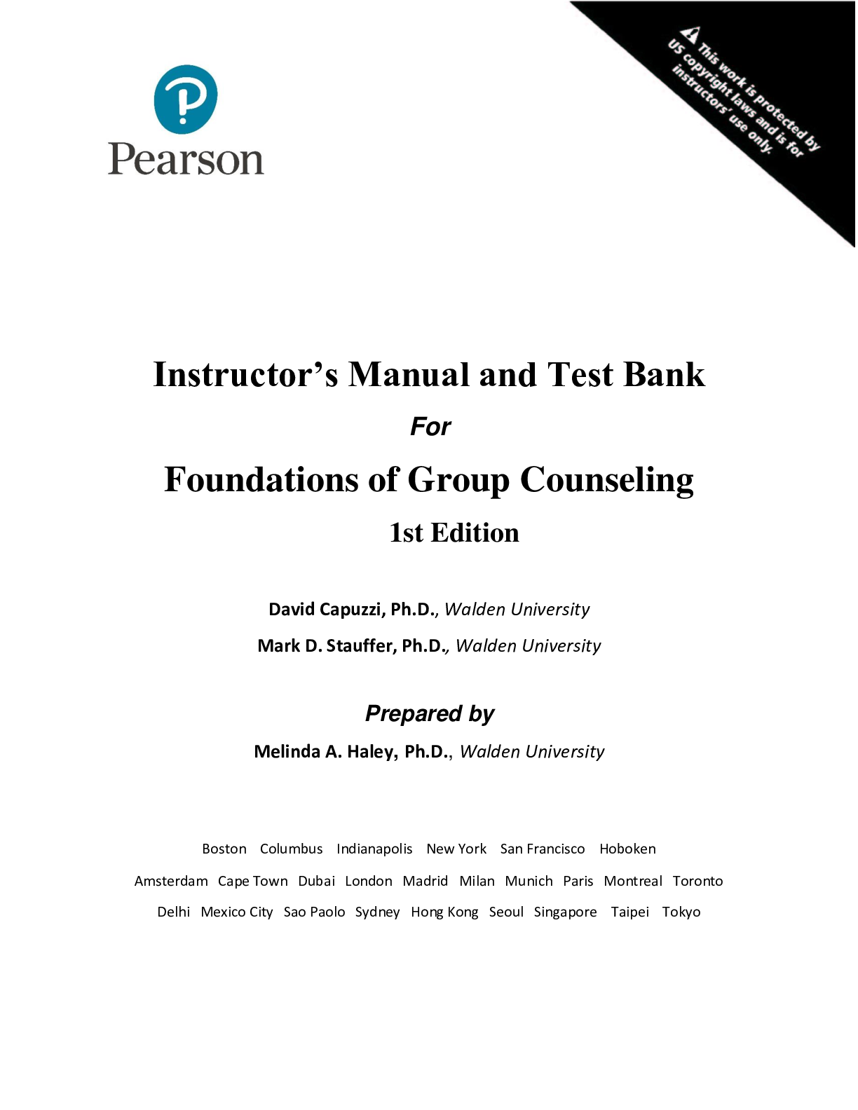 Education > TEST BANKS > Testbank&Instructor Manual for Foundations of Group Counseling, 1st edition David Capuzzi (All)