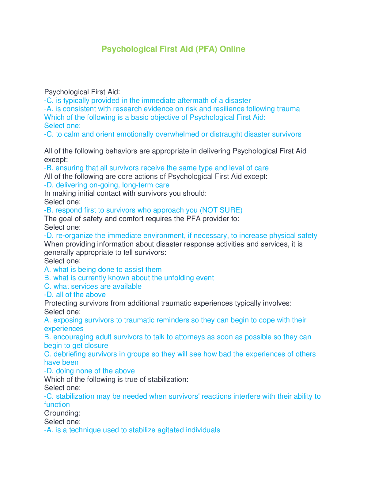 Education > EXAM > Psychological First Aid (PFA) Online questions and answers Rated A+ complete solution 2024/2025 (All)