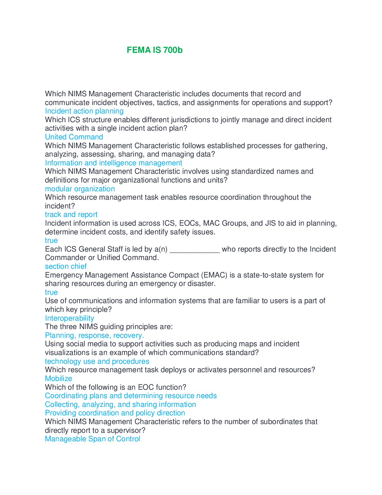 Education > EXAM > FEMA IS 700b question and answers 100% complete solution 2024/2025 (All)