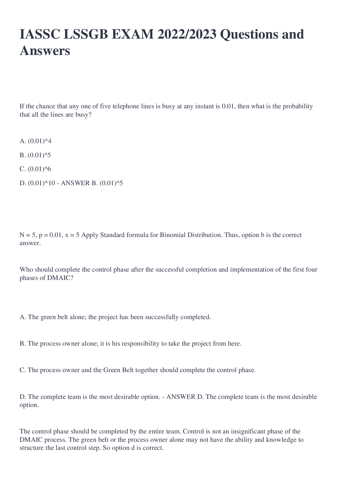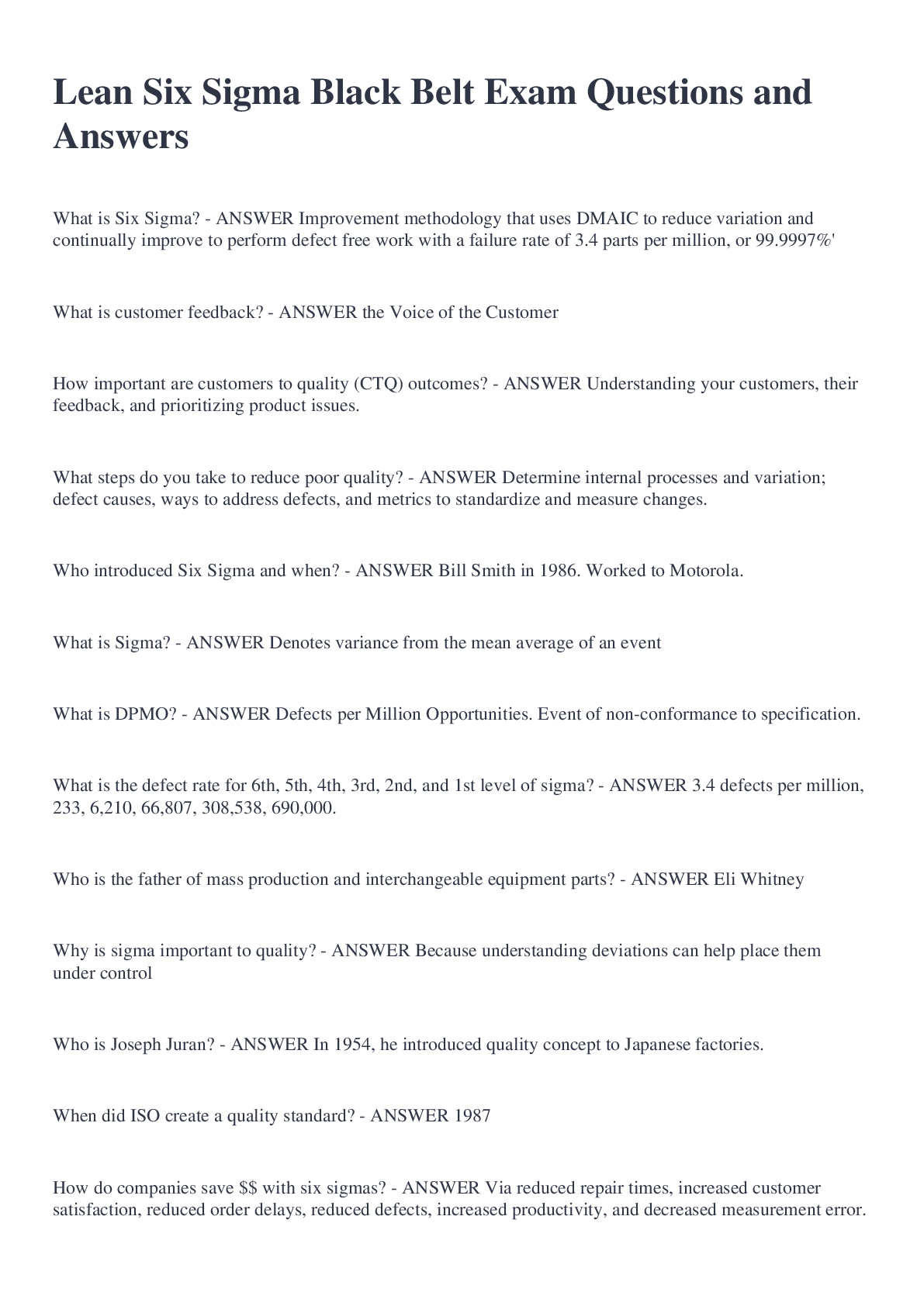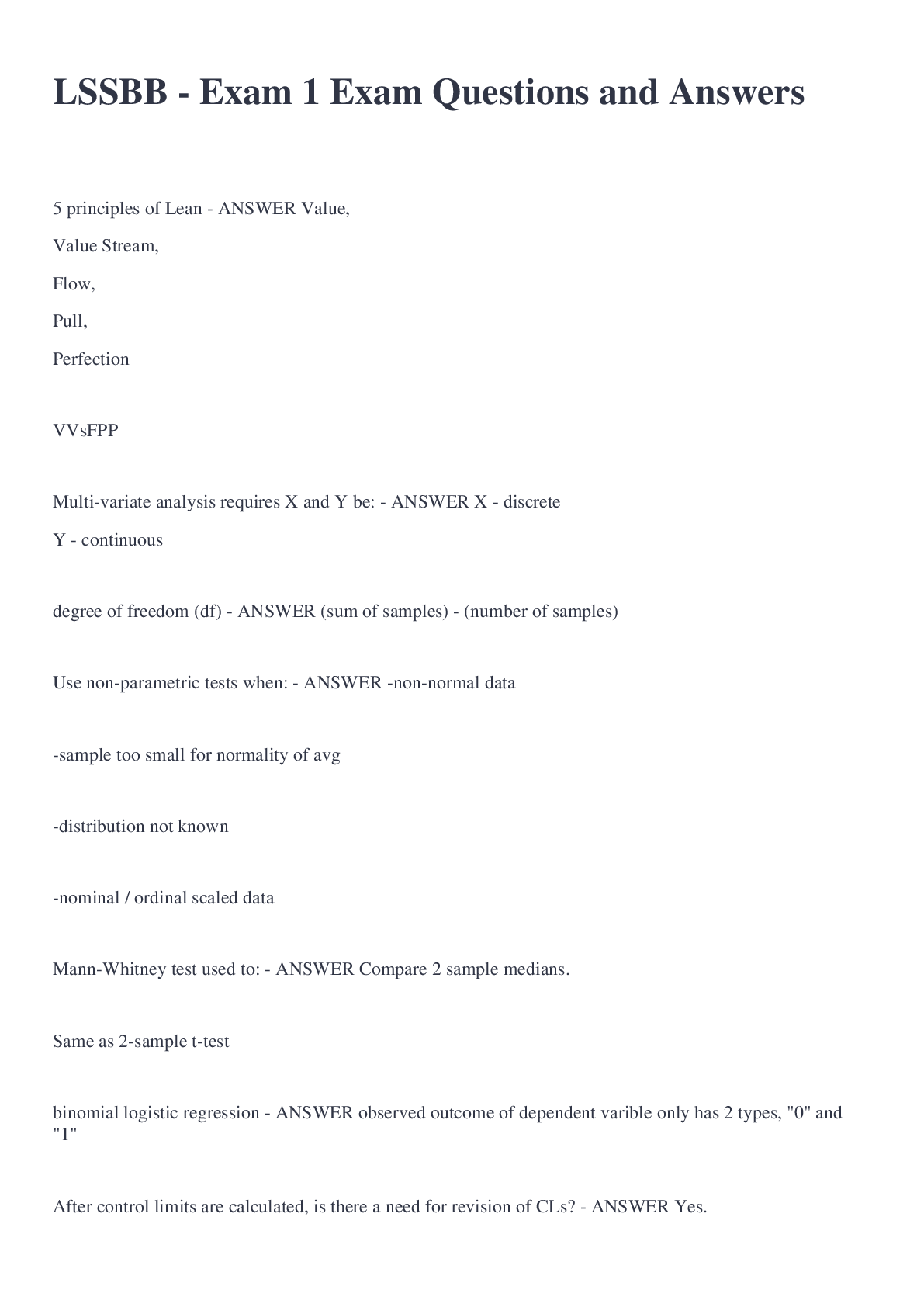Education > QUESTIONS & ANSWERS > Lean Six Sigma Black Belt Exam Questions and Answers (All)