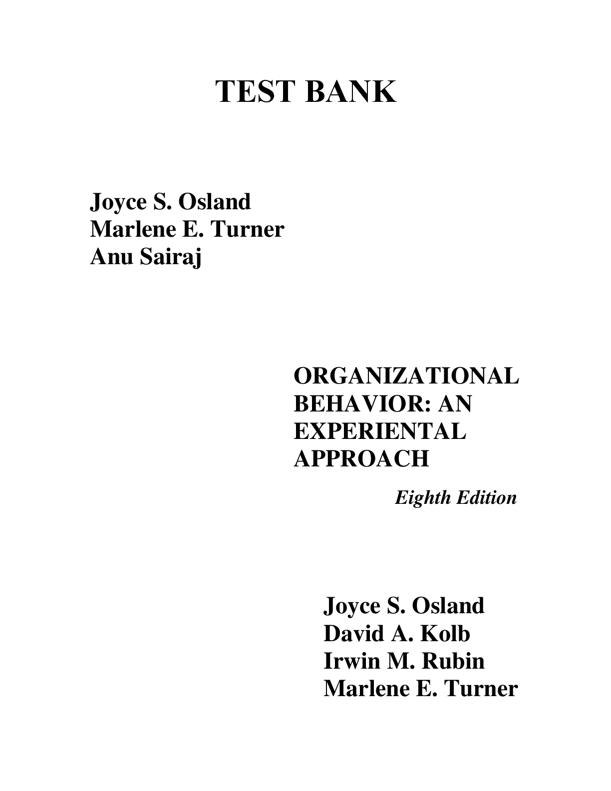 Education > TEST BANKS > Test Bank For Organizational Behavior An Experiential Approach 8th Edition By Joyce Kolb Rubin Turner (All)