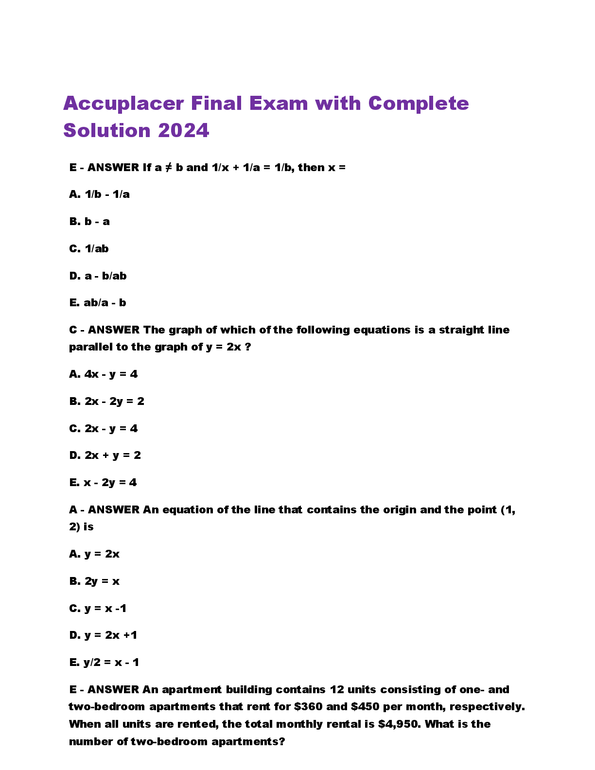 Education > EXAM > Accuplacer Final Exam with Complete Solution 2024 (All)