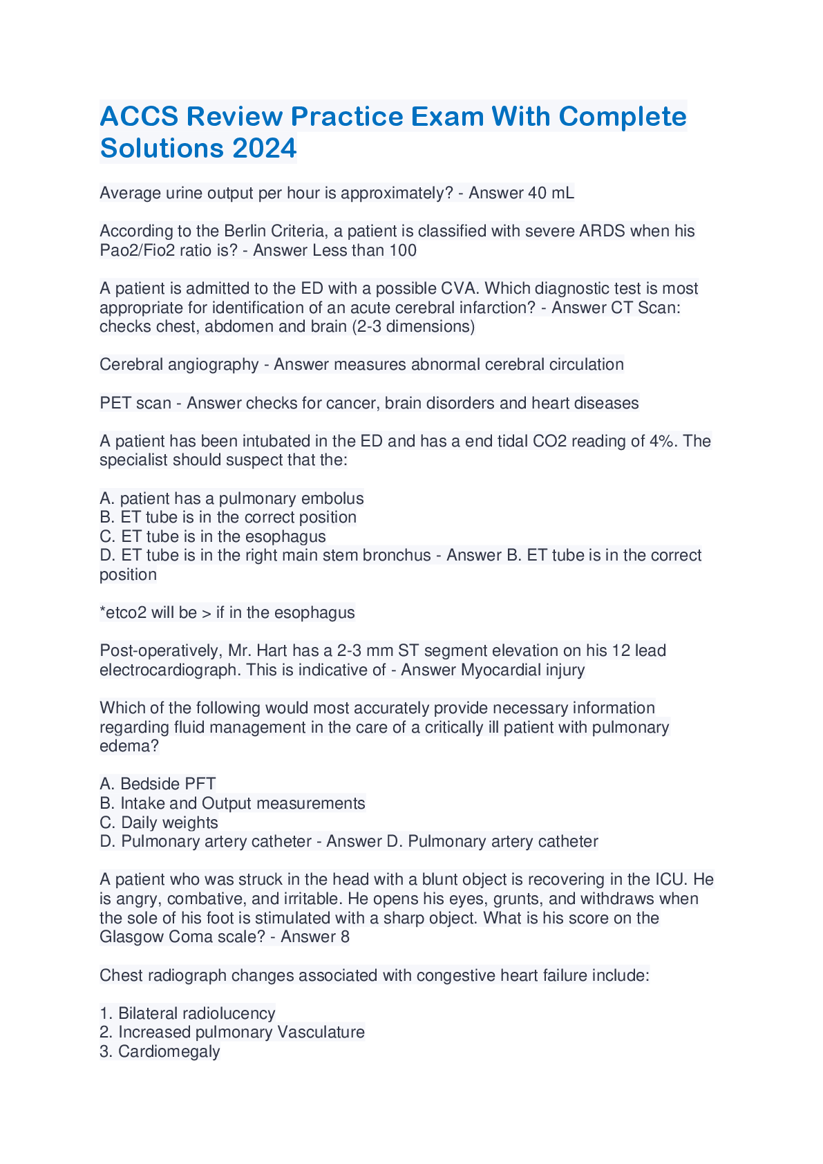 Education > EXAM > ACCS Review Practice Exam With Complete Solutions 2024 (All)