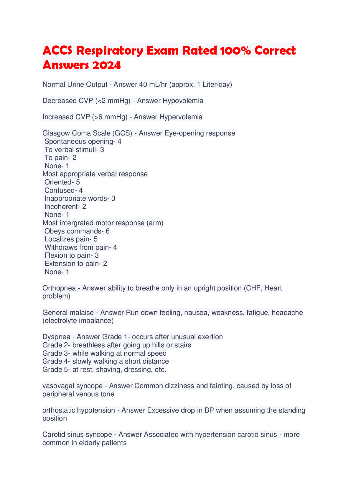 Education > EXAM > ACCS Respiratory Exam Rated 100% Correct Answers 2024 (All)