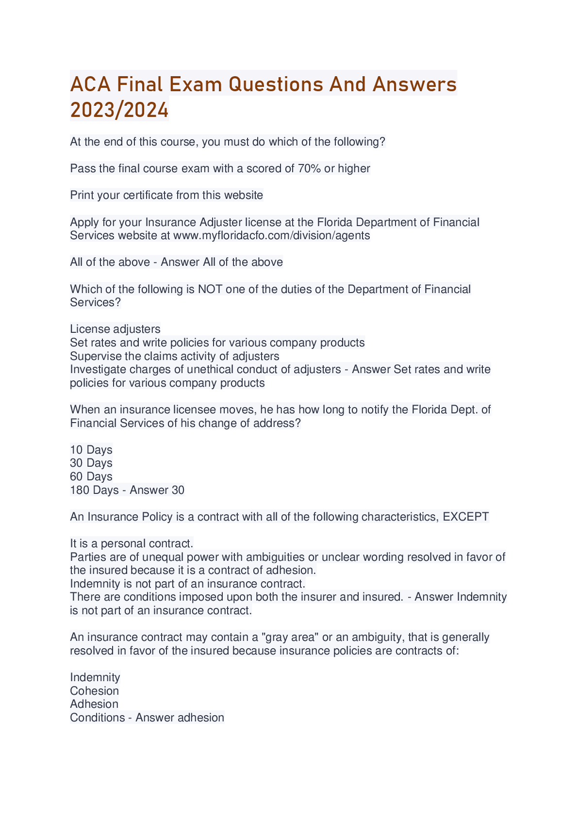 Education > EXAM > ACA Final Exam Questions And Answers 2023/2024 (All)