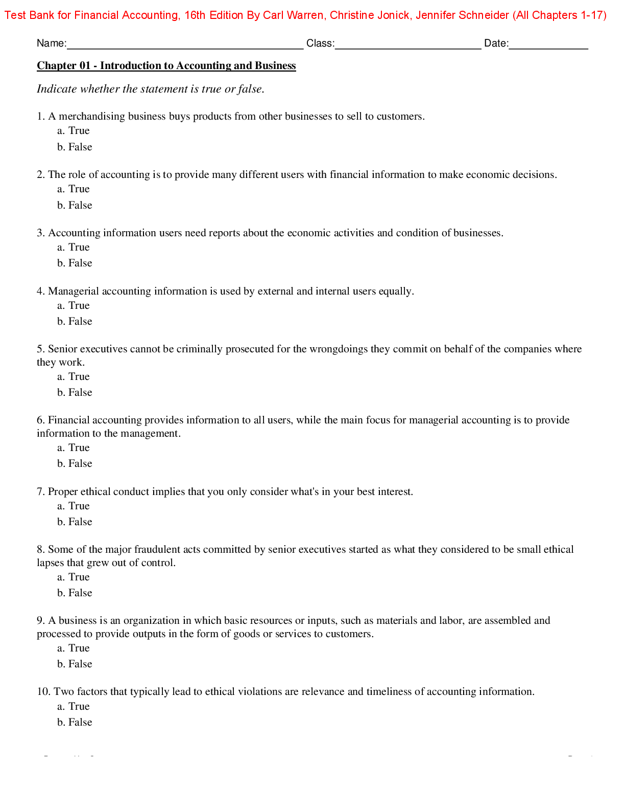 Education > TEST BANKS > Test Bank For Financial Accounting, 16th Edition By Carl Warren, Christine Jonick, Jennifer Schneider (All)
