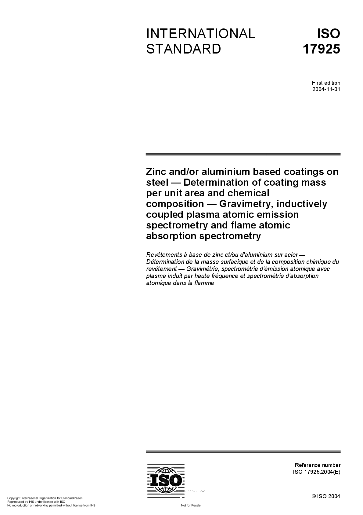 Education > eBook-PDF > eBook Zinc and or aluminium based coatings on steel - Determination of coating mass per unit area and chemical composition - Gravimetry, and flame atomic absorption spectrometry 1st Edition by ISO/TC 17/SC 1 (All)