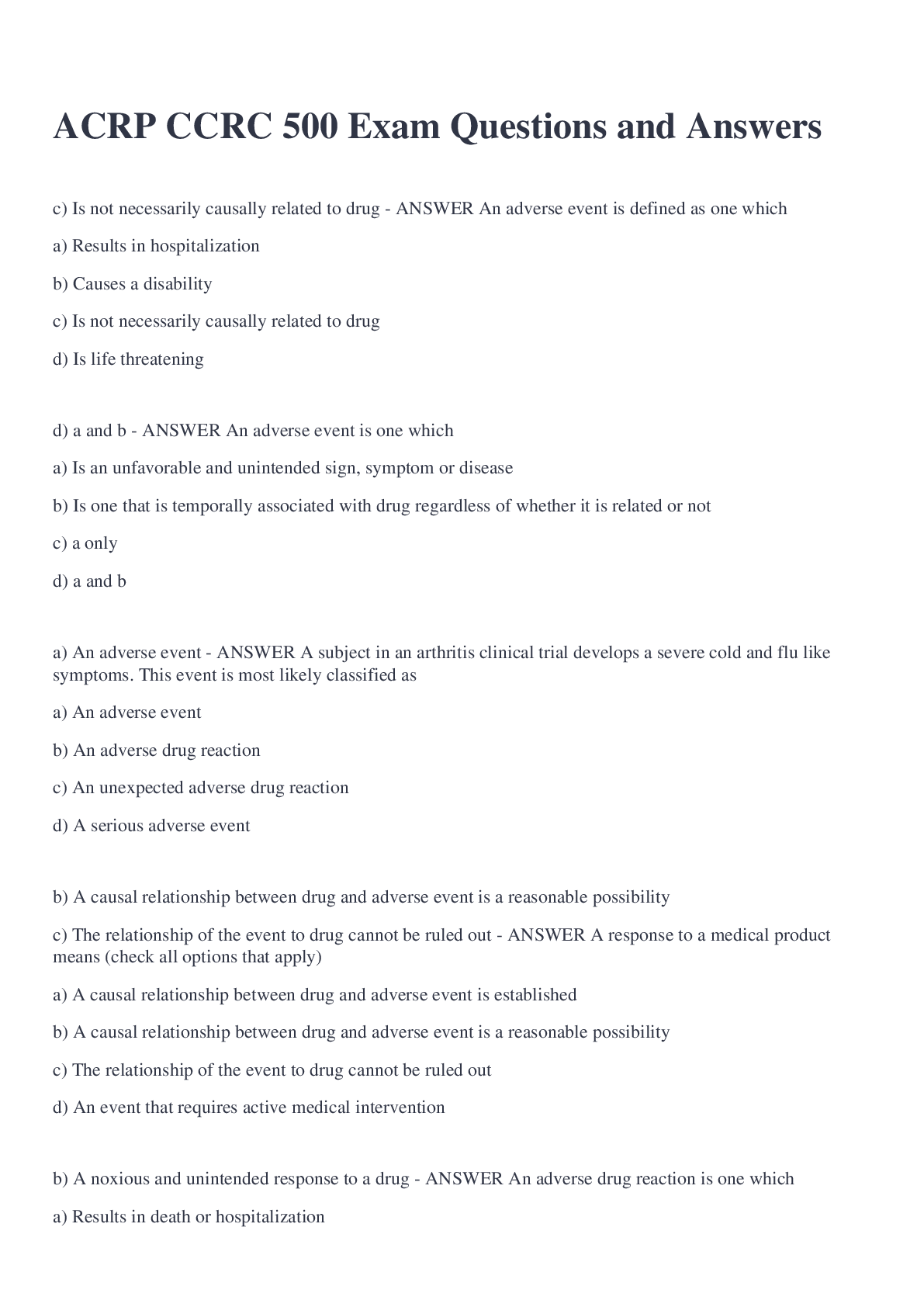 Education > EXAM > ACRP CCRC 500 Exam Questions and Answers (All)