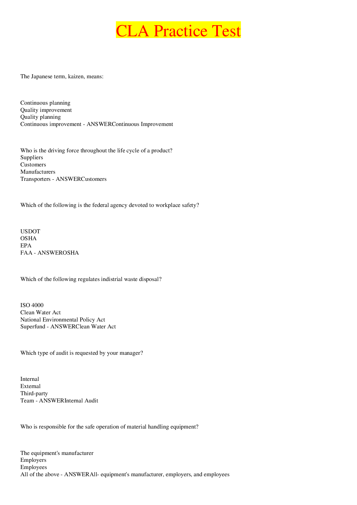 Education > QUESTIONS & ANSWERS > CLA Practice Test 2022 well completed (graded A+) (All)